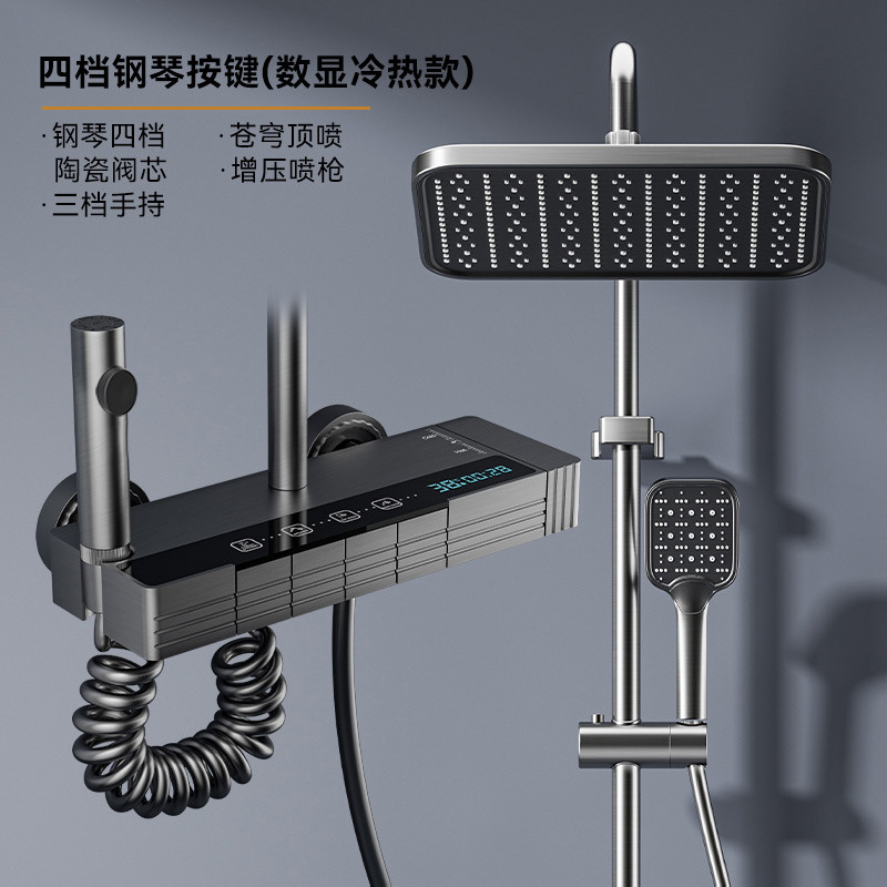 花洒套装花洒全套淋浴增压全铜花洒全套厂家智能恒温花洒喷头枪灰花洒淋浴花洒套装金色暗装花洒淋浴花洒 枪灰花洒亚马逊爆款花洒套装五金挂件生产厂家