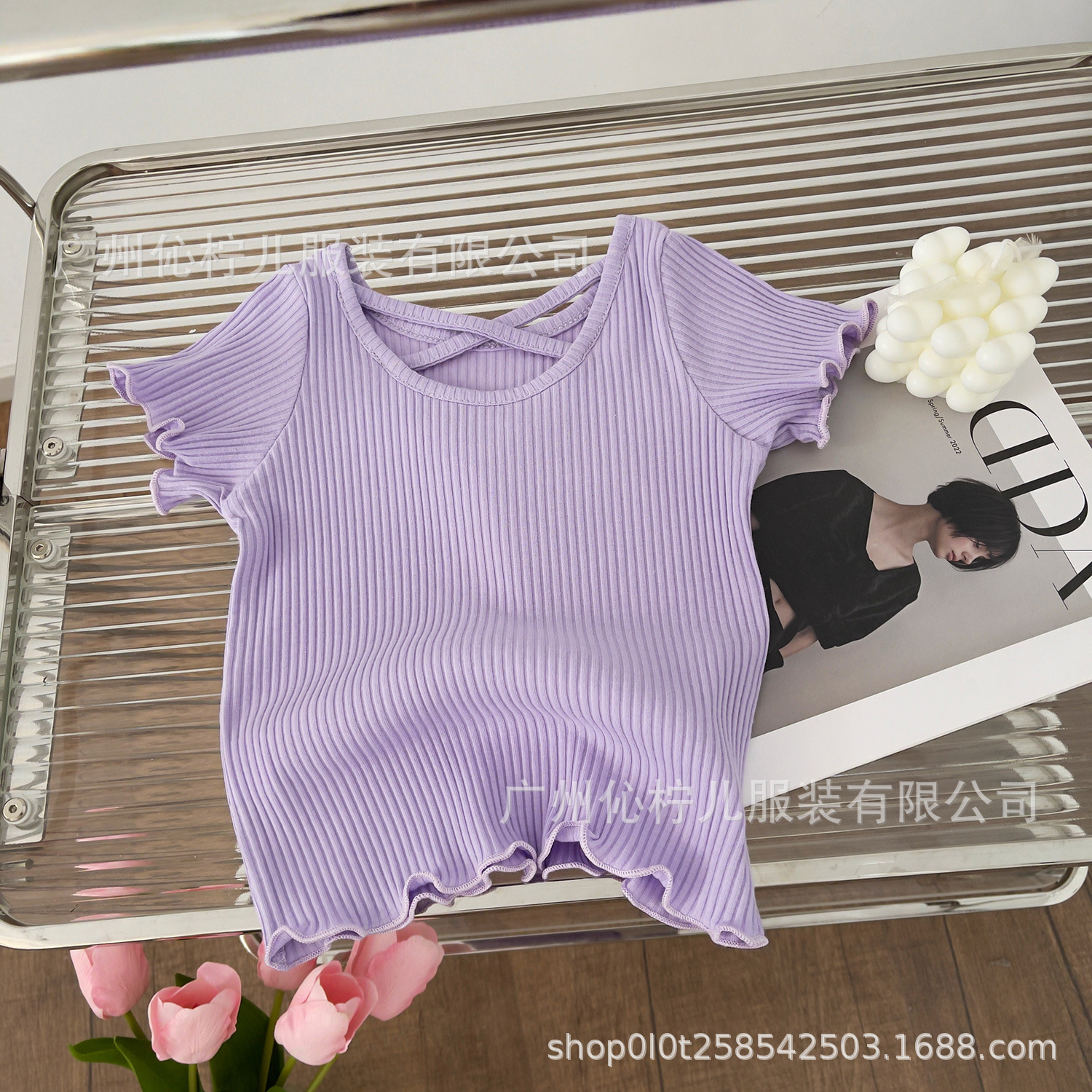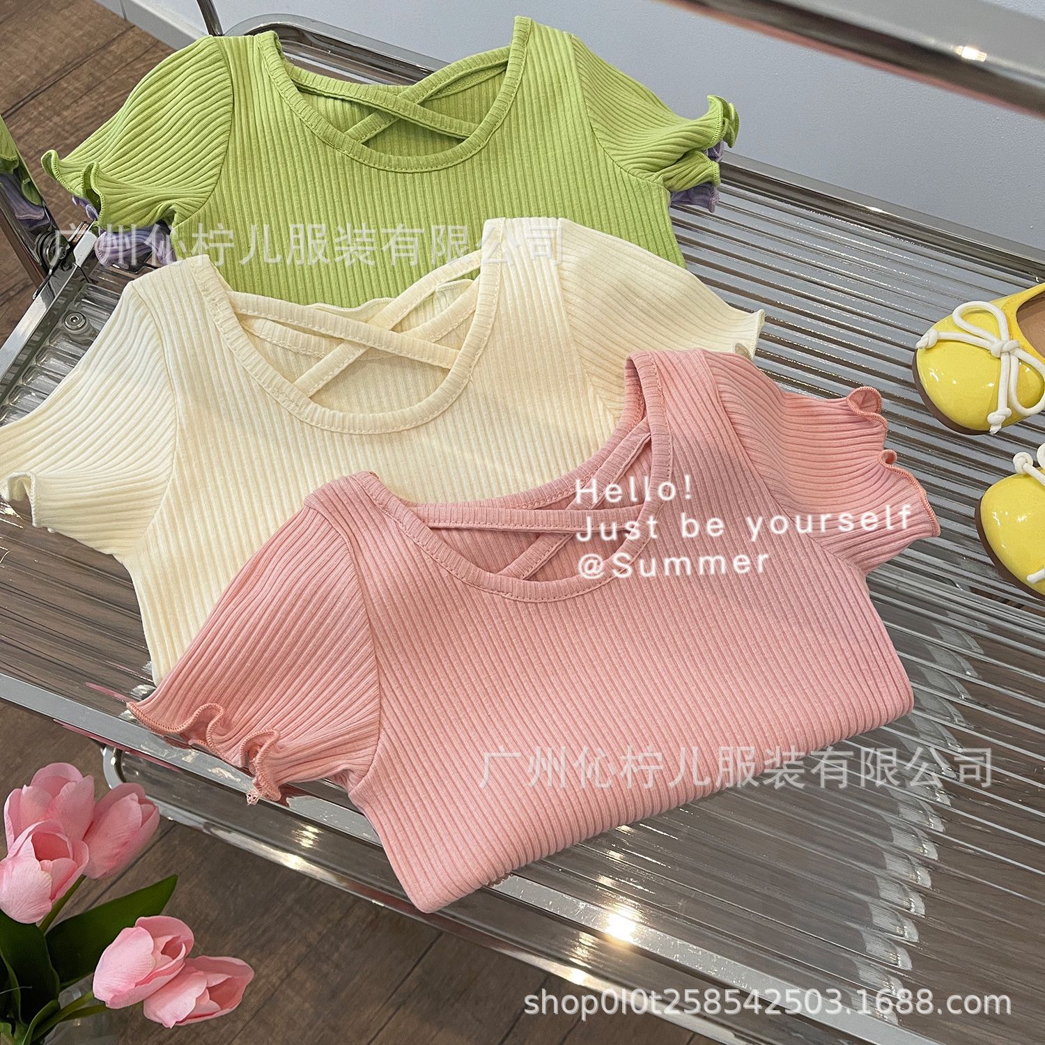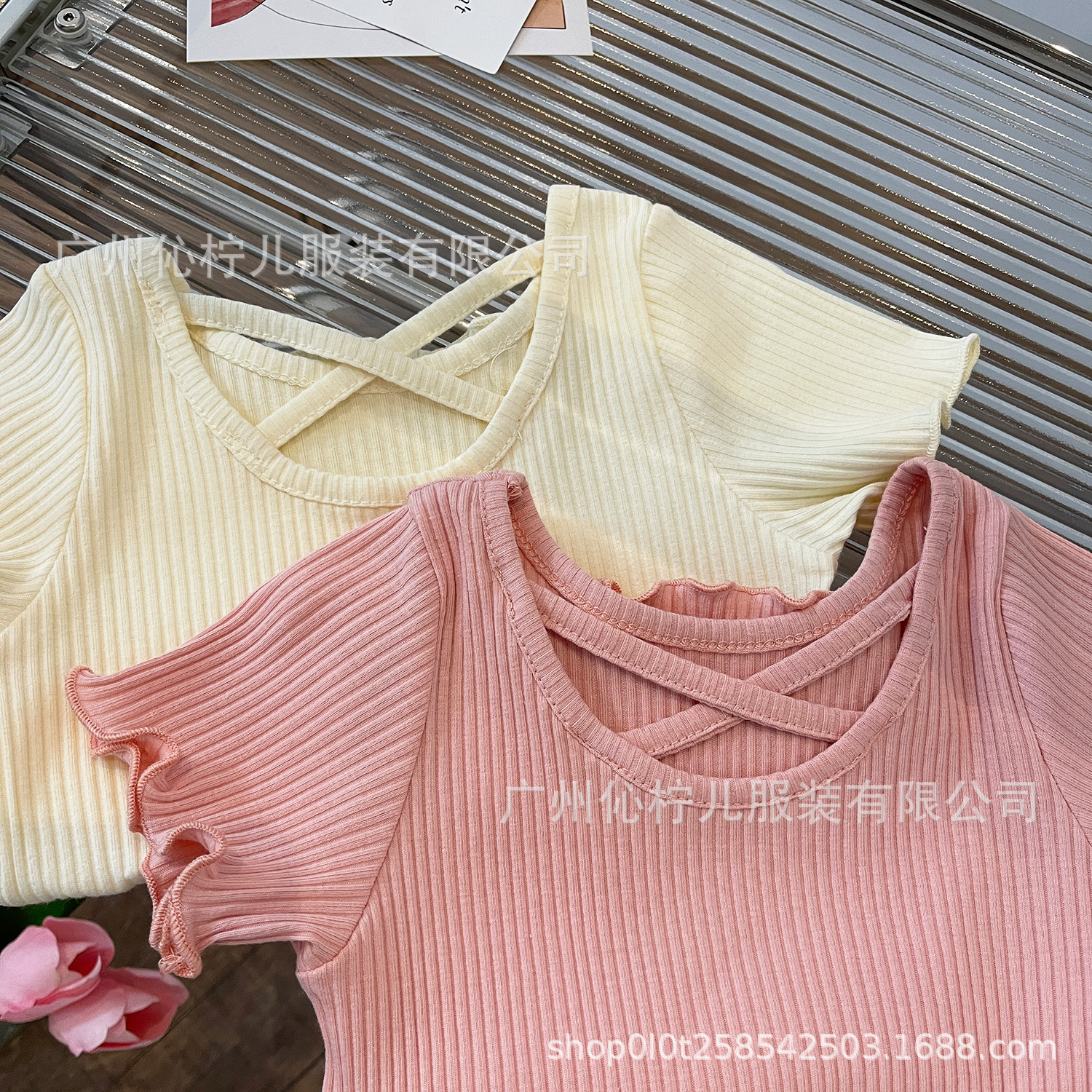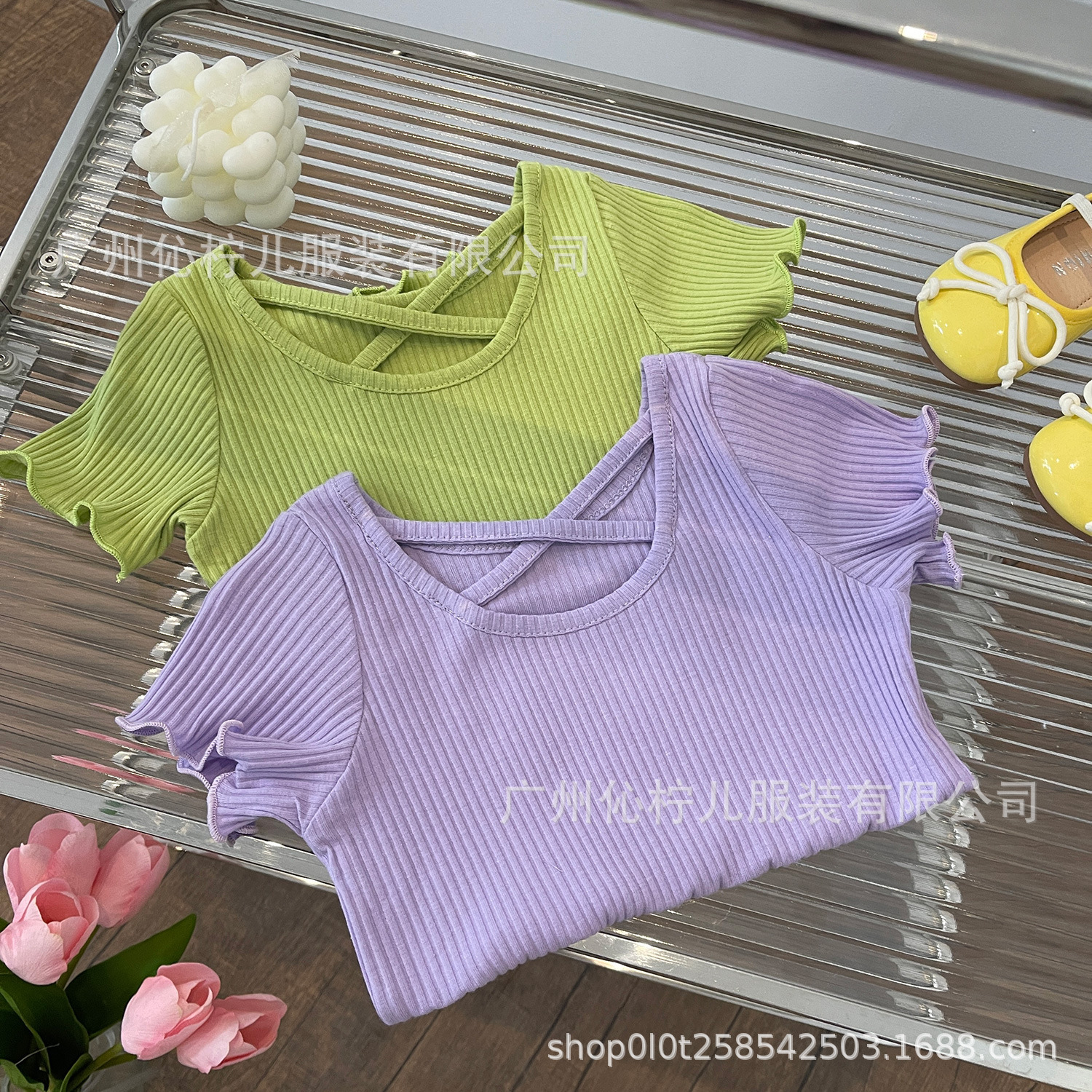 아기 소녀 여름 새로운 티셔츠 모든 경기 서양 패션 트렌드 대외 무역 새로운 캔디 컬러 캐주얼베이스 셔츠 트렌디