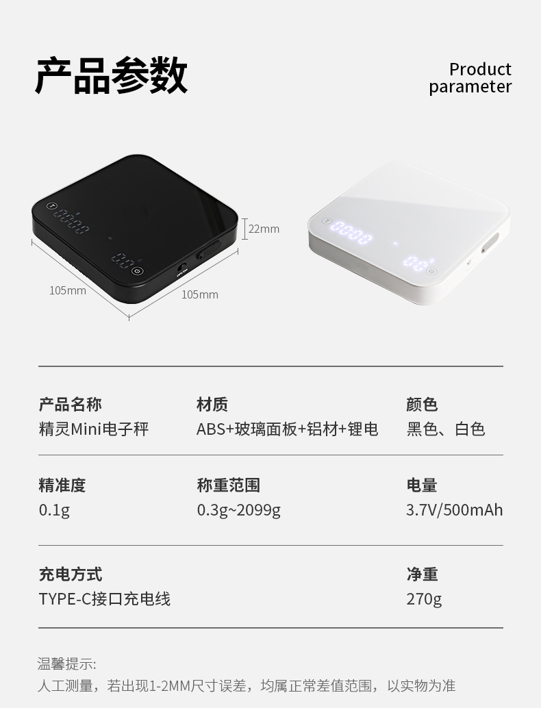 핸드 커피 지능형 전자 스케일 미니 정밀 무게 다기능 타이밍 주방 규모 식품 도매 업체 소비