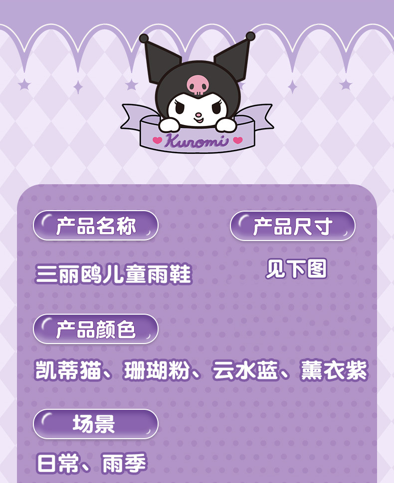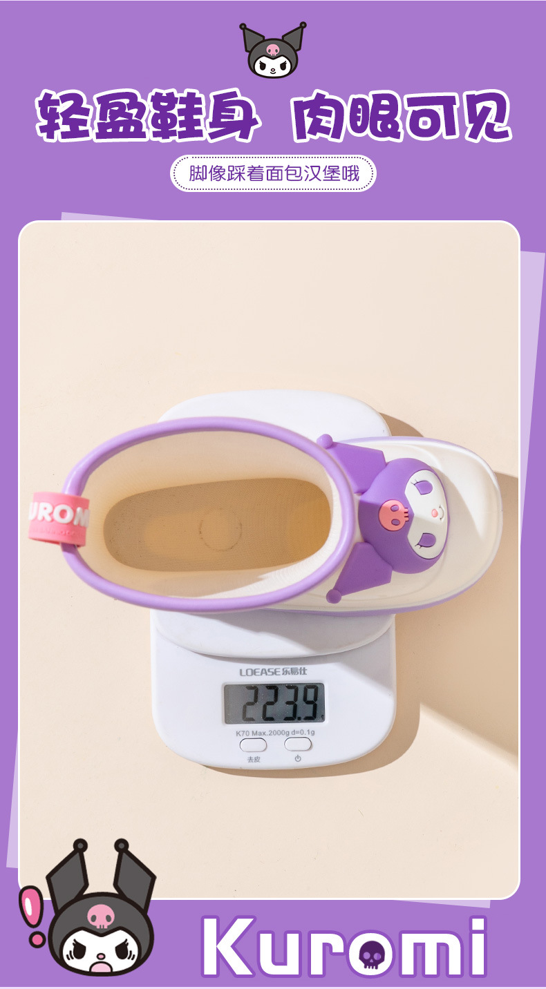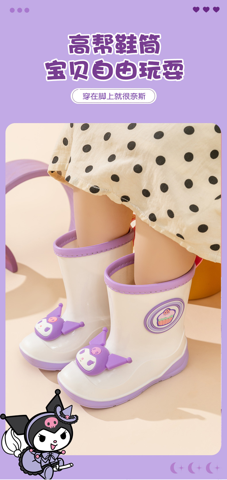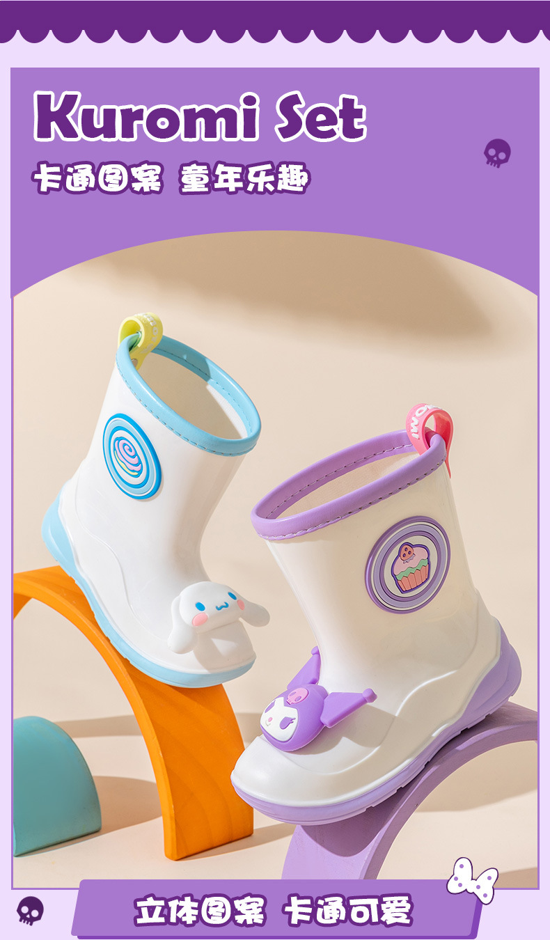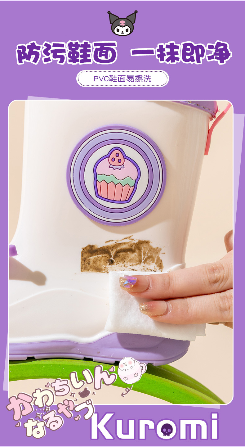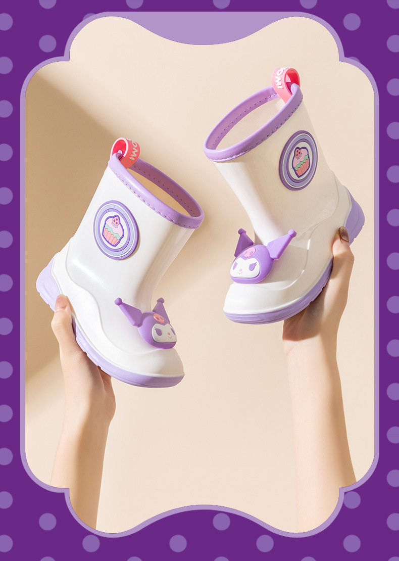 Sanrio Kurome 어린이 장화 소녀 중반 송아지 방수 미끄럼 방지 유치원 만화 멜로디 워터 부츠