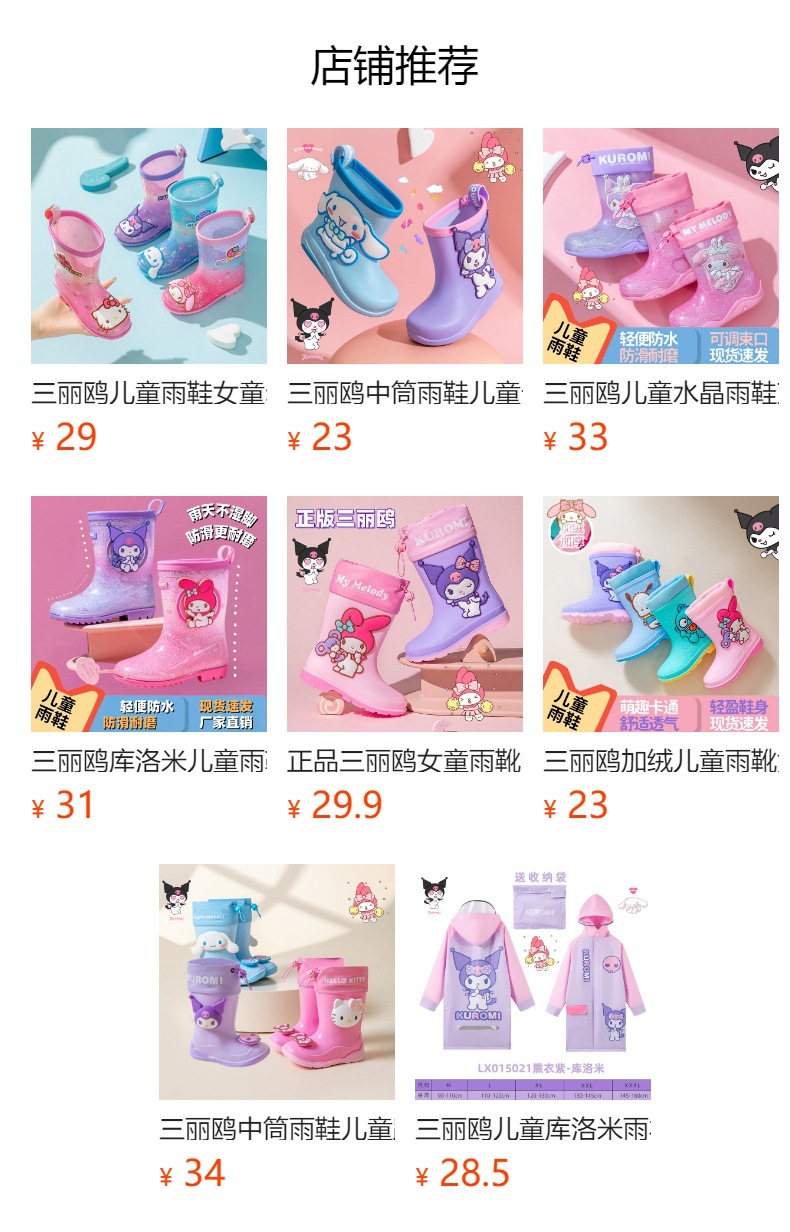 Sanrio Kurome 어린이 장화 소녀 중반 송아지 방수 미끄럼 방지 유치원 만화 멜로디 워터 부츠스토어 가기