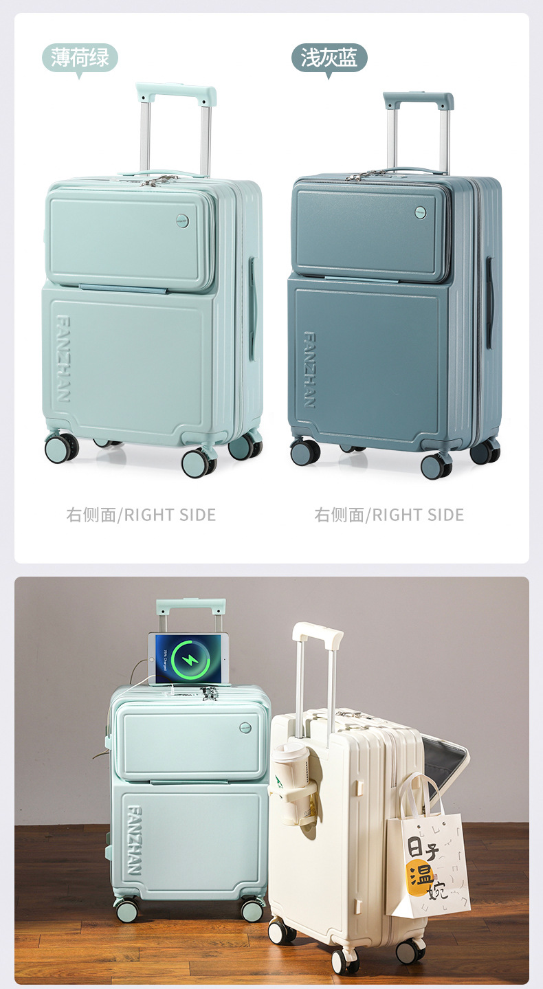 전면 개방 수하물 여성 학생 작은 휴대용 트롤리 케이스 암호 상자 남성 20 인치 탑승 케이스 음소거 유니버설 휠스토어 가기