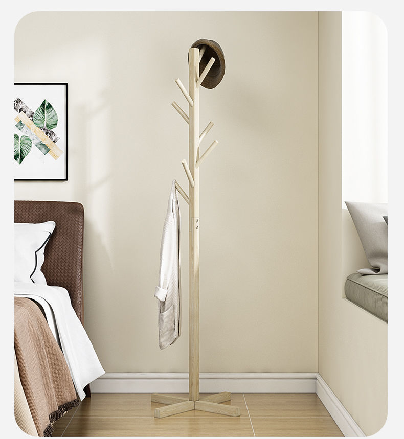 간단한 가정용 옷 걸이 랙 솔리드 우드 코트 랙 바닥 침실 수직 옷걸이 룸 가방 교수형 랙