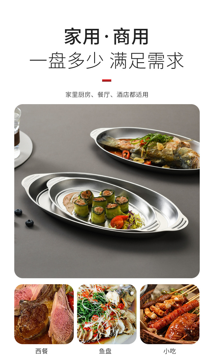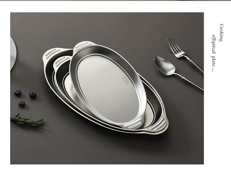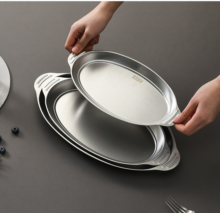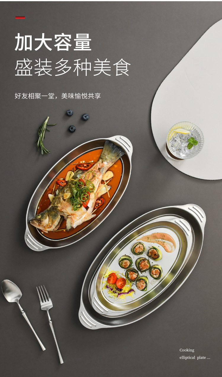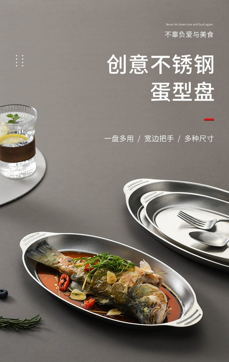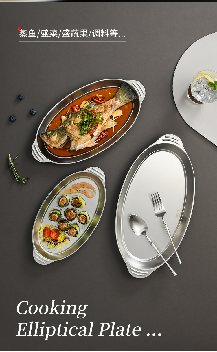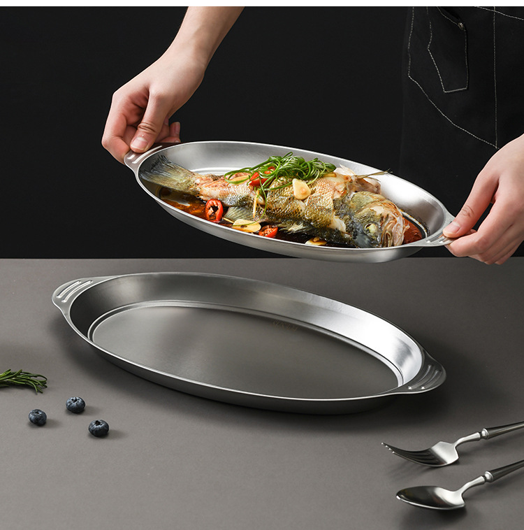 304 한국식 스테인리스 생선 접시 구이 접시 창의적인 바베큐 접시 간식 접시 물고기 모양 접시 타원형 접시 찜 생선 접시