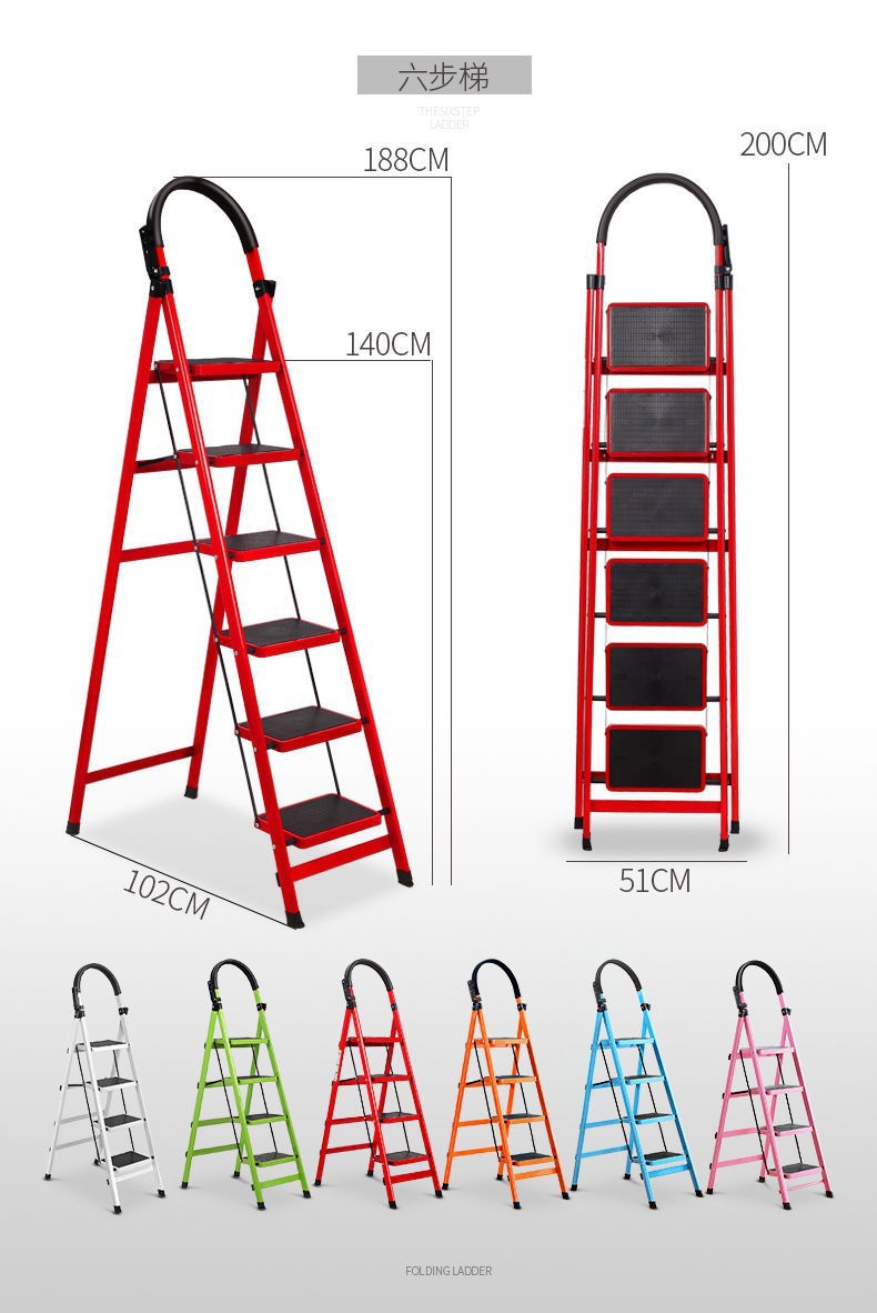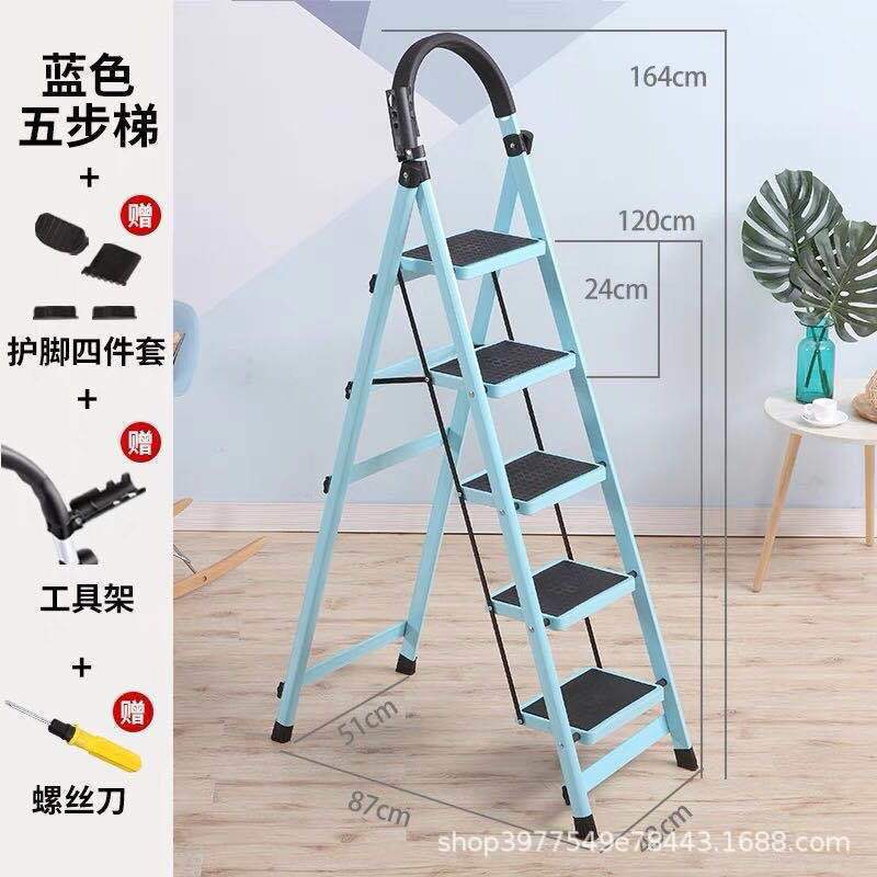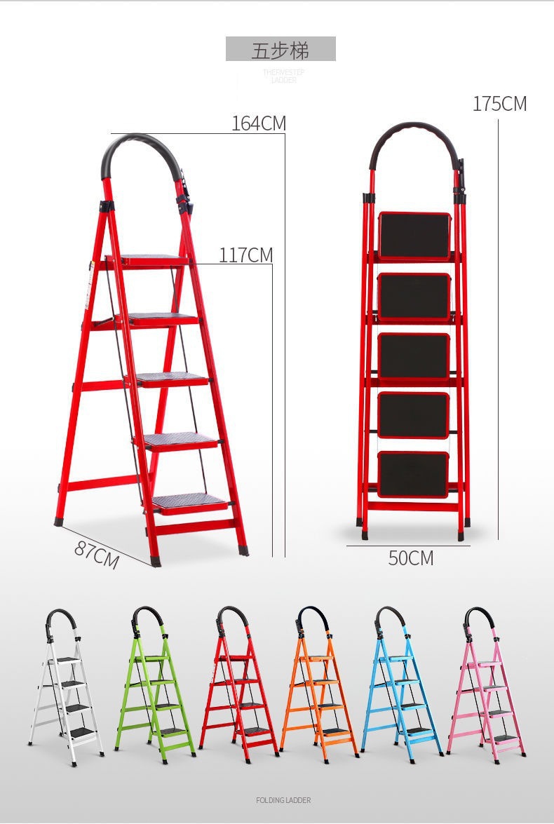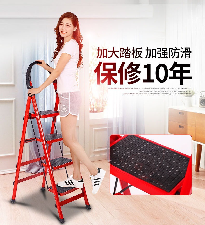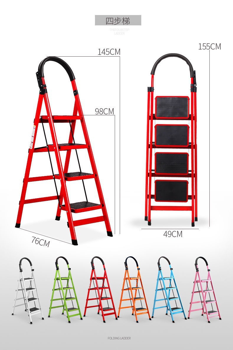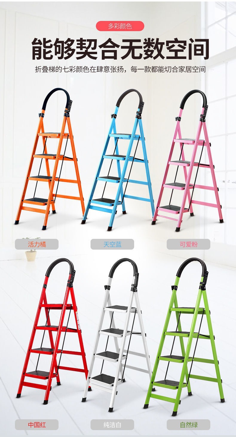 모바일 헤링본 사다리 계단 텔레스코픽 사다리 4 단계 5 단계 사다리 실내 사다리 가정용 접이식 사다리 두껍게 탄소강스토어 가기