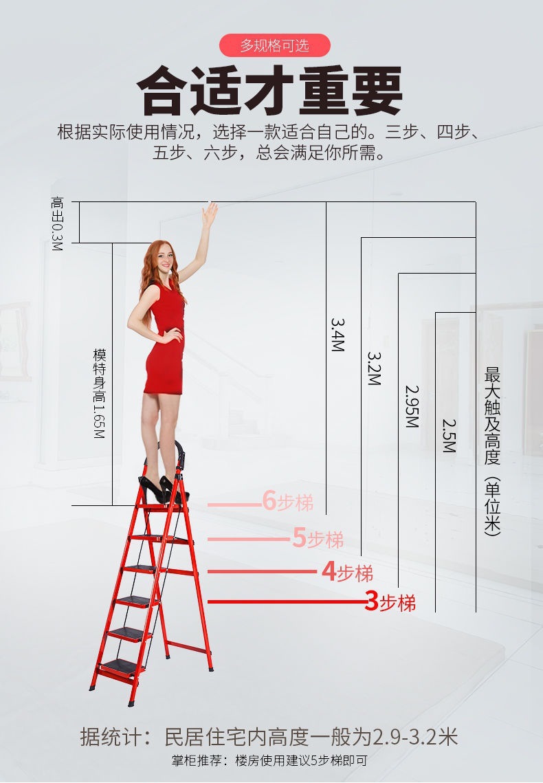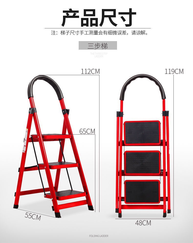 • 슈퍼 짧은 빨간색 3 단계 사다리