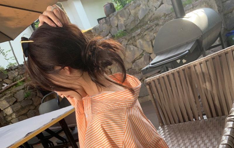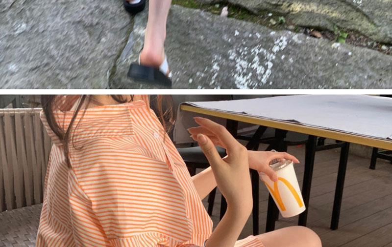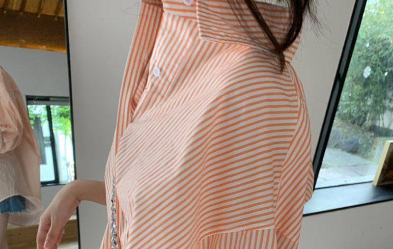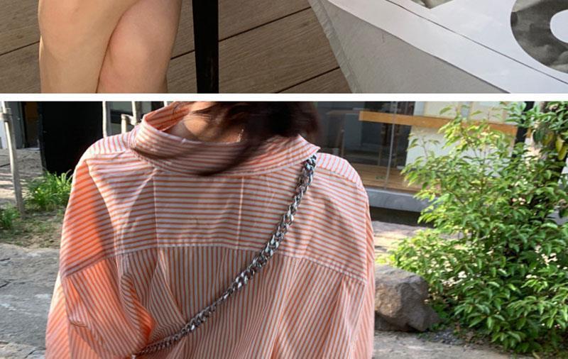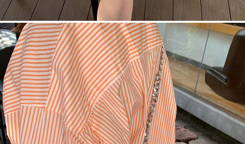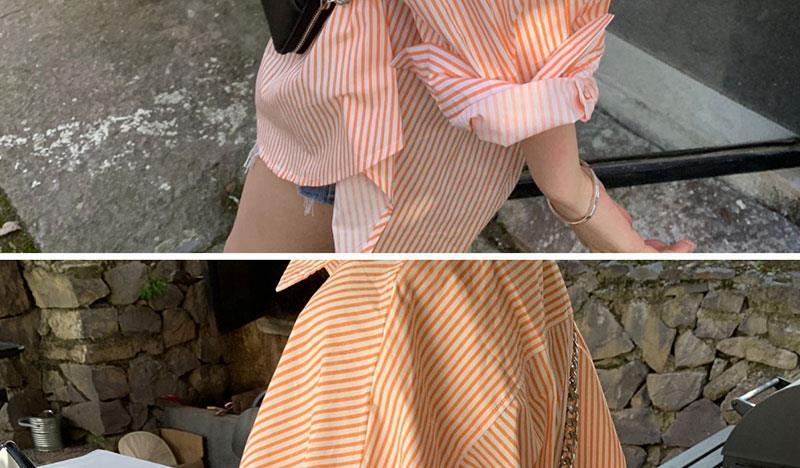 오렌지 수직 스트라이프 셔츠 여성용 레트로 홍콩 스타일 가을 새로운 디자인 센스 틈새 느슨한 긴팔 탑