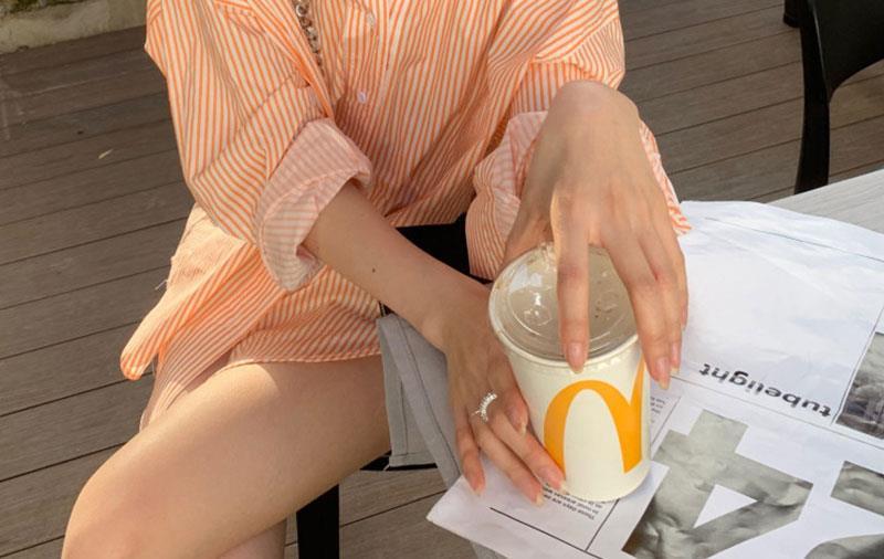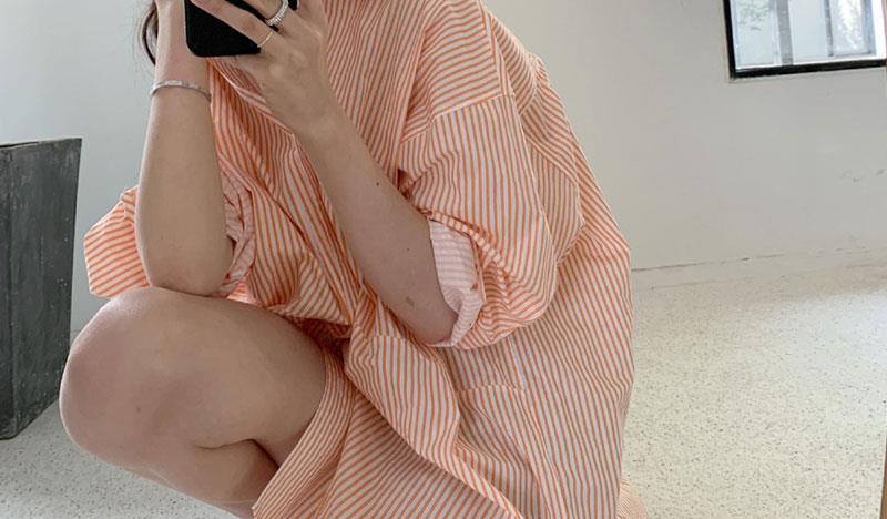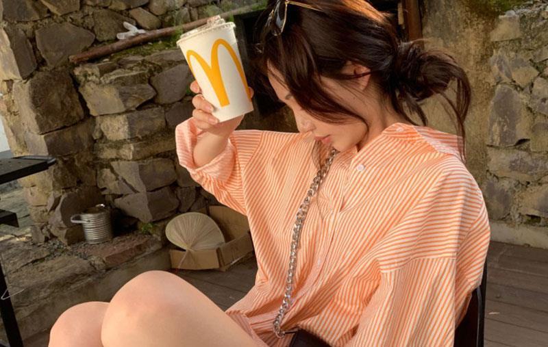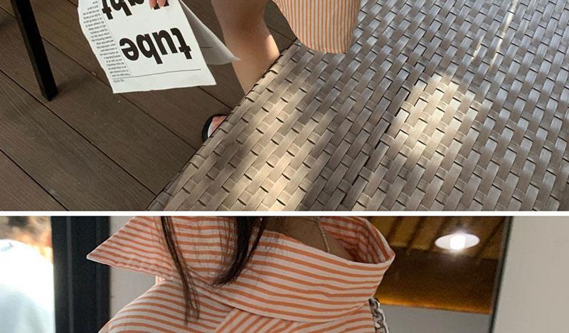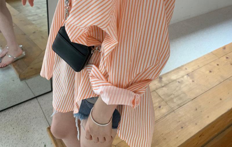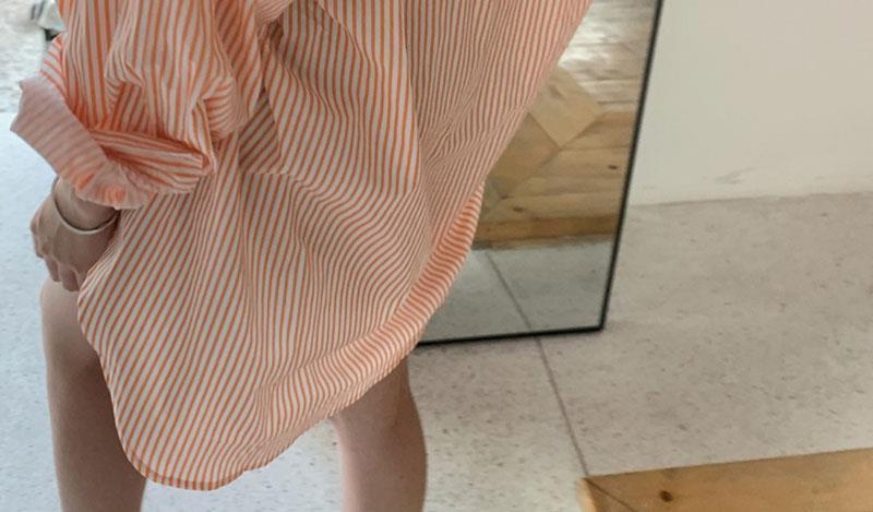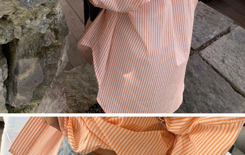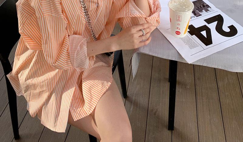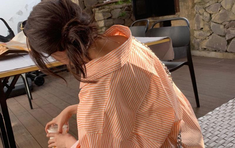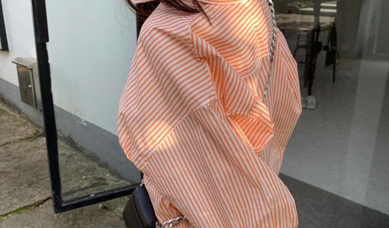 오렌지 수직 스트라이프 셔츠 여성용 레트로 홍콩 스타일 가을 새로운 디자인 센스 틈새 느슨한 긴팔 탑스토어 가기