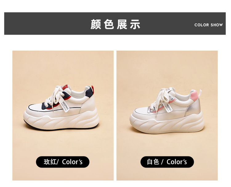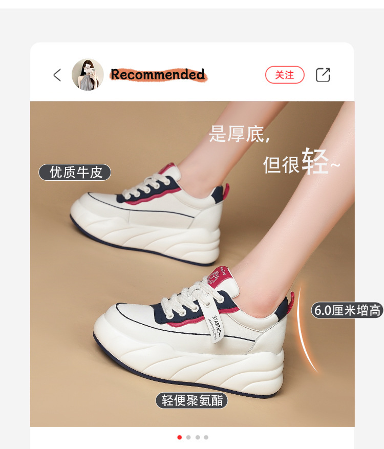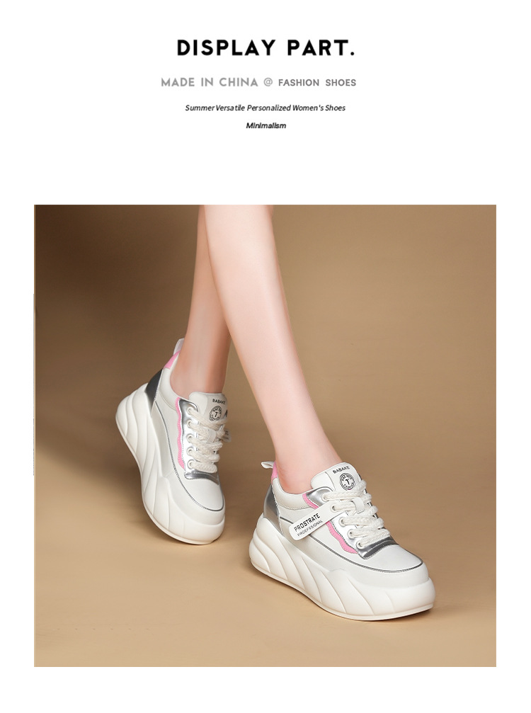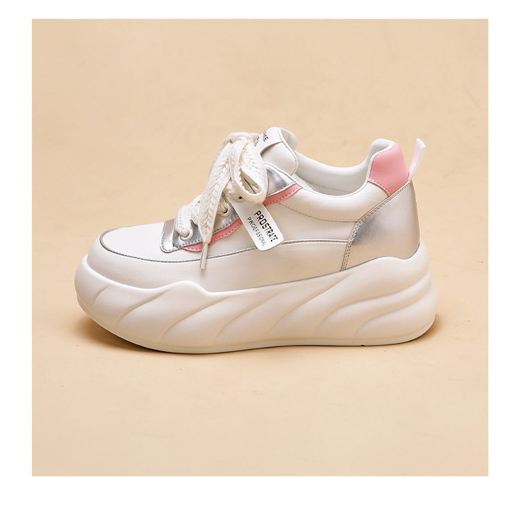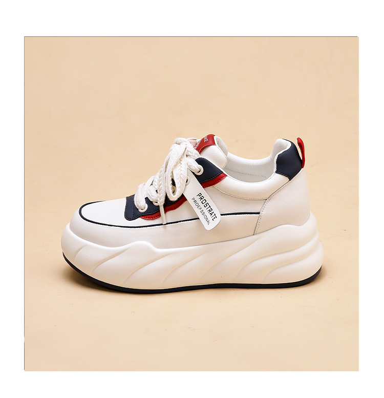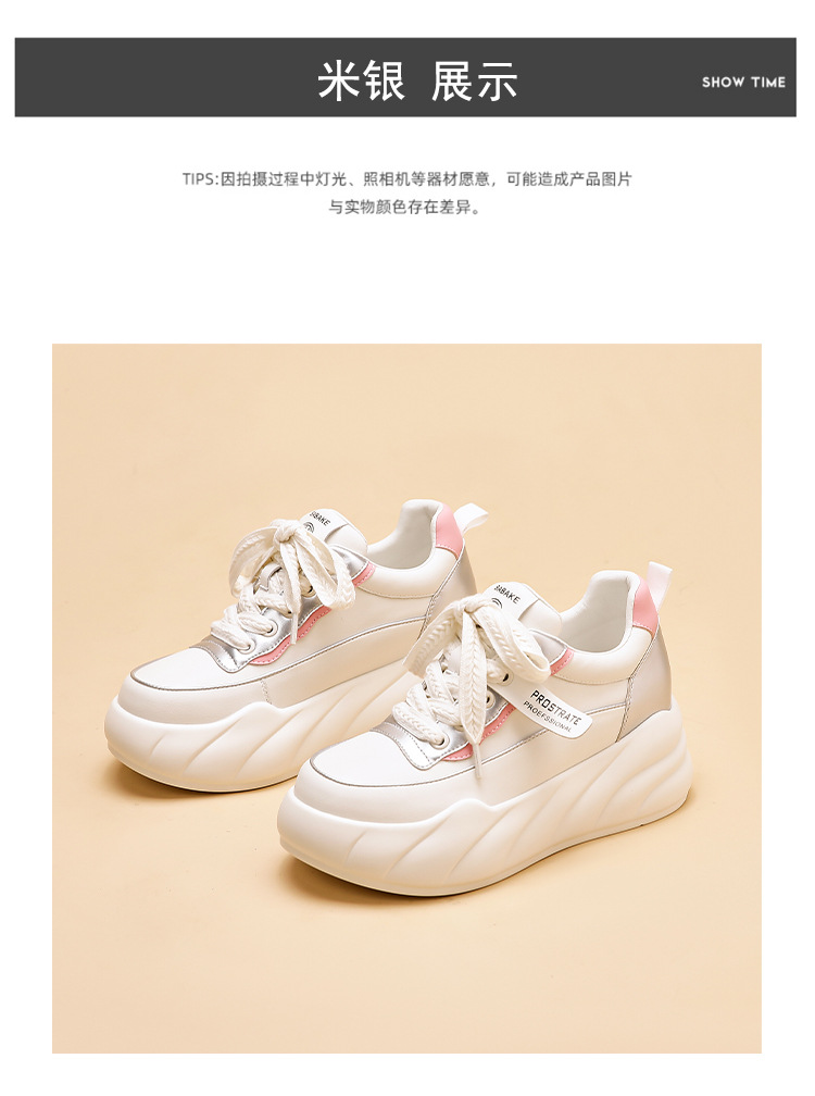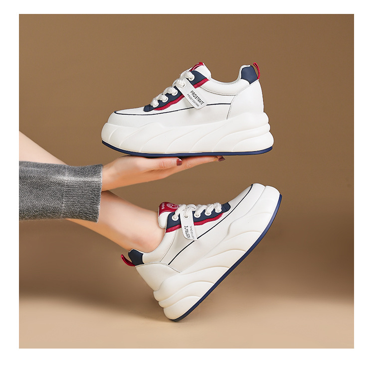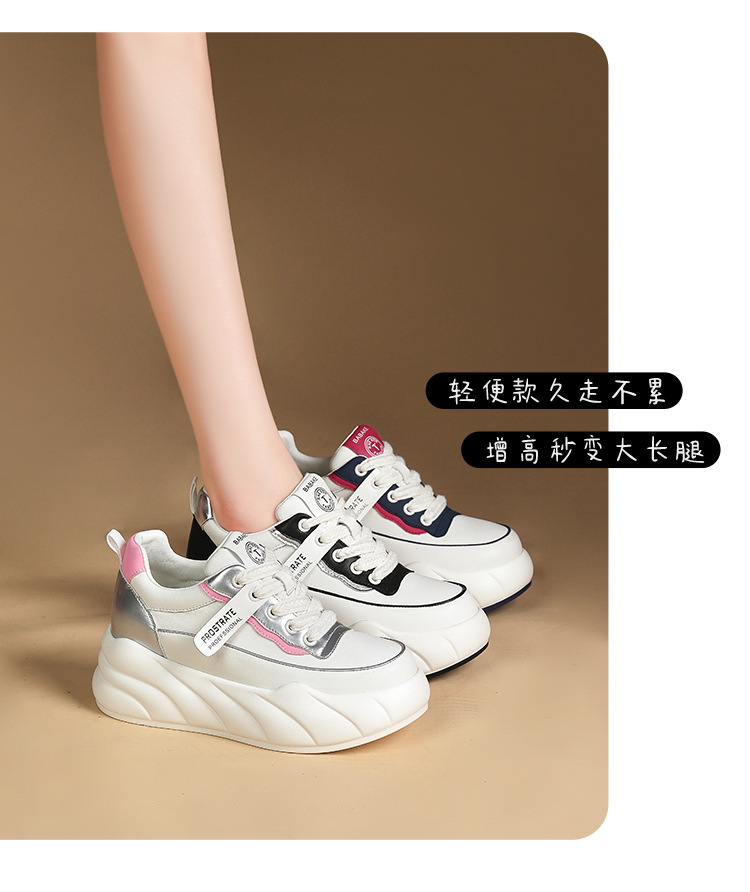 진정한 가죽 흰색 신발 여성 2024 봄 새로운 두꺼운 바닥 다목적 캐주얼 신발 인기있는 작은 숨겨진 높이 증가 여성 신발 패션스토어 가기