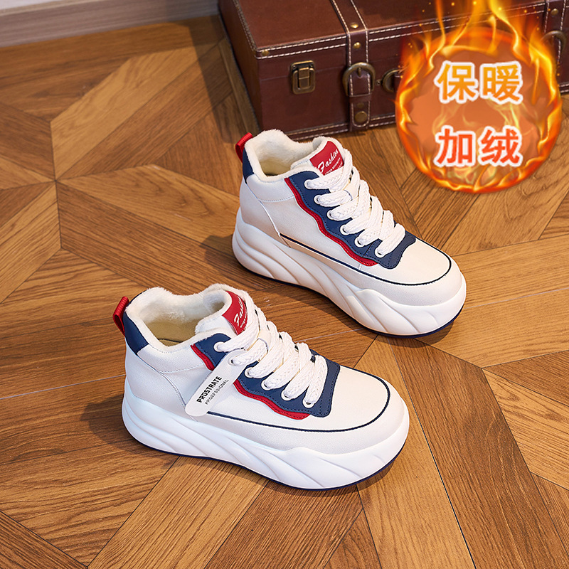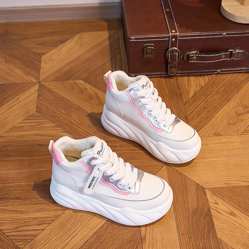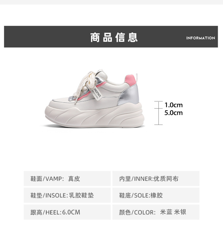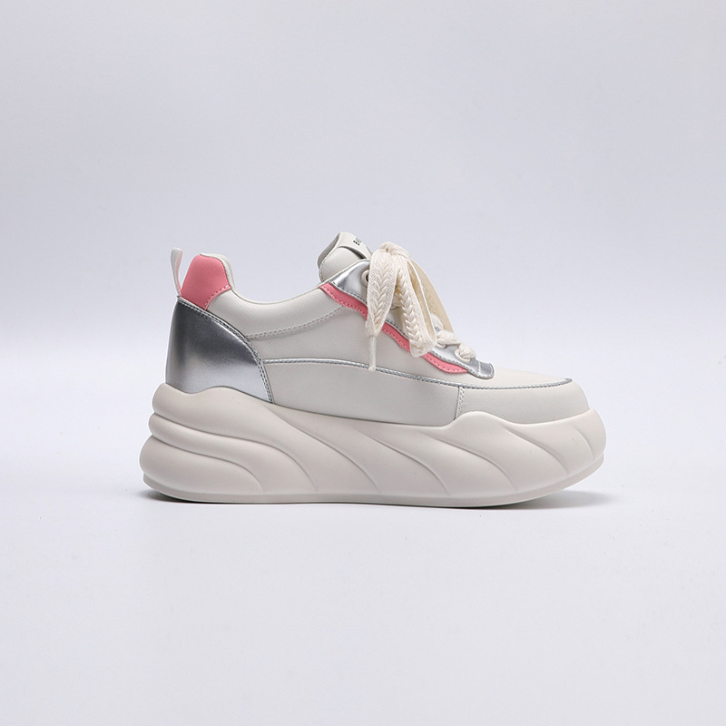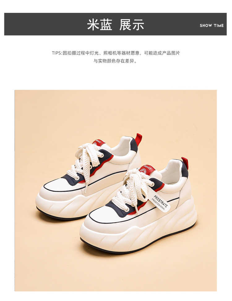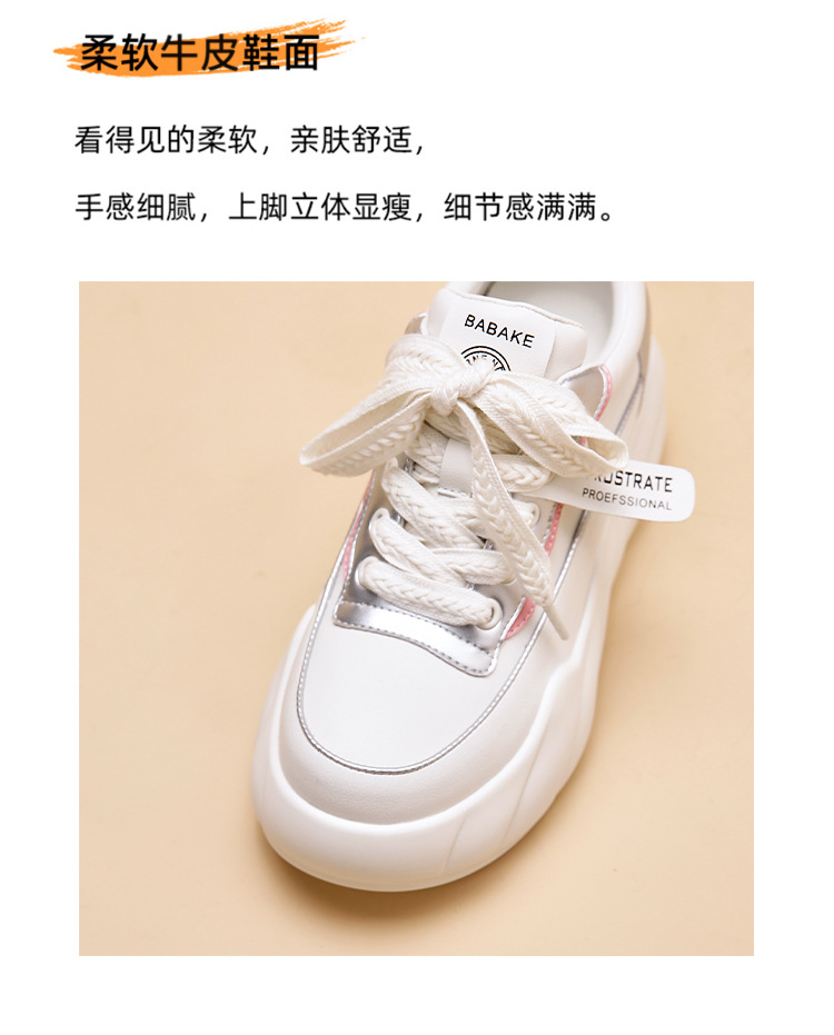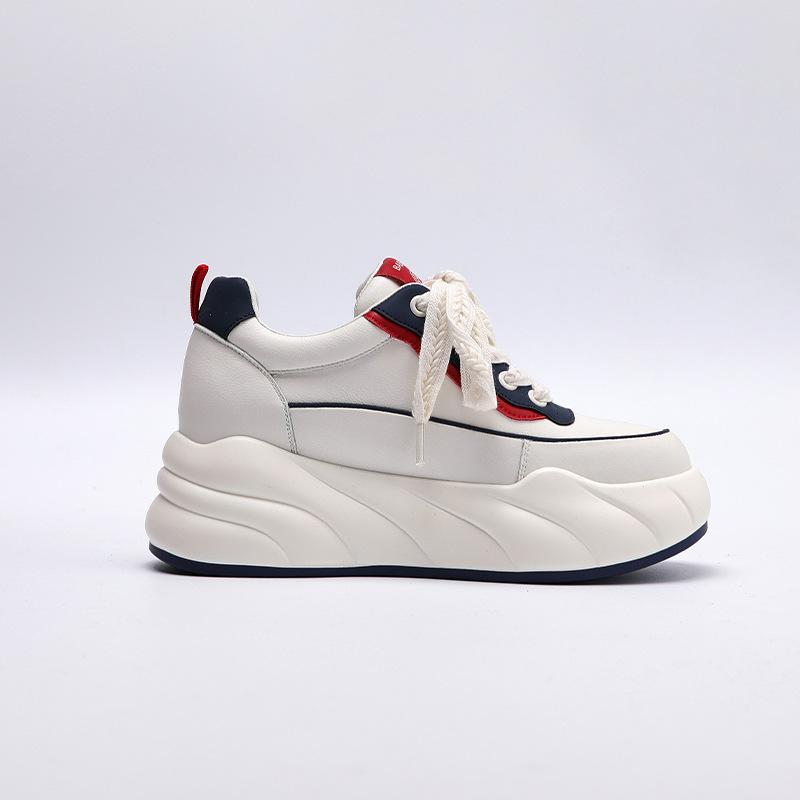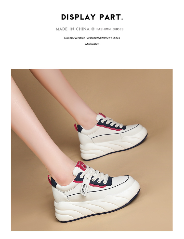 진정한 가죽 흰색 신발 여성 2024 봄 새로운 두꺼운 바닥 다목적 캐주얼 신발 인기있는 작은 숨겨진 높이 증가 여성 신발 패션스토어 가기
