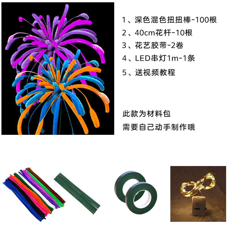 2024 년 새해 동요 톤 같은 불꽃 트위스트 새해 트위스트 불꽃 놀이 수제 DIY 소재 가방 빛나는 축제스토어 가기