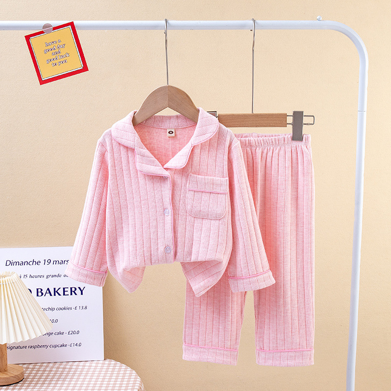어린이 에어컨 의류 속옷 잠옷 새로운 순수한면 홈 착용 캐주얼 정장 소년 소녀 봄과 가을 투피스 세트