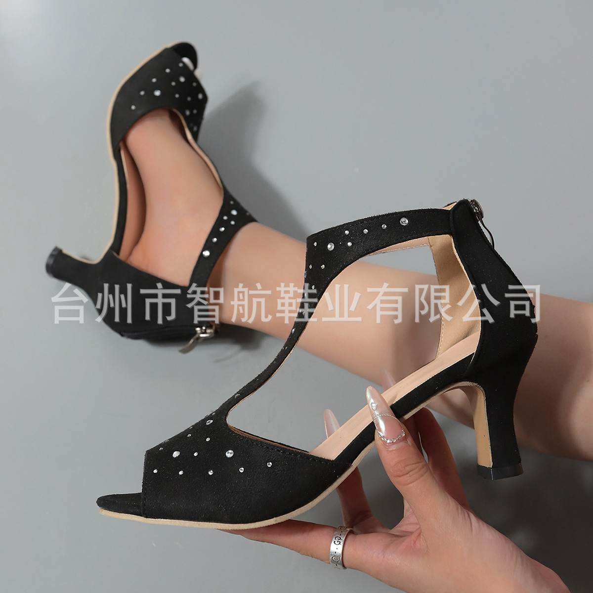 유럽과 미국의 심플한 패션 라인석 백 지퍼 가방 뒤꿈치 엿보기 발가락 신발 여성 여름 대외 무역 플러스 사이즈 사이드 빈 스틸레토 힐 로마 샌들
