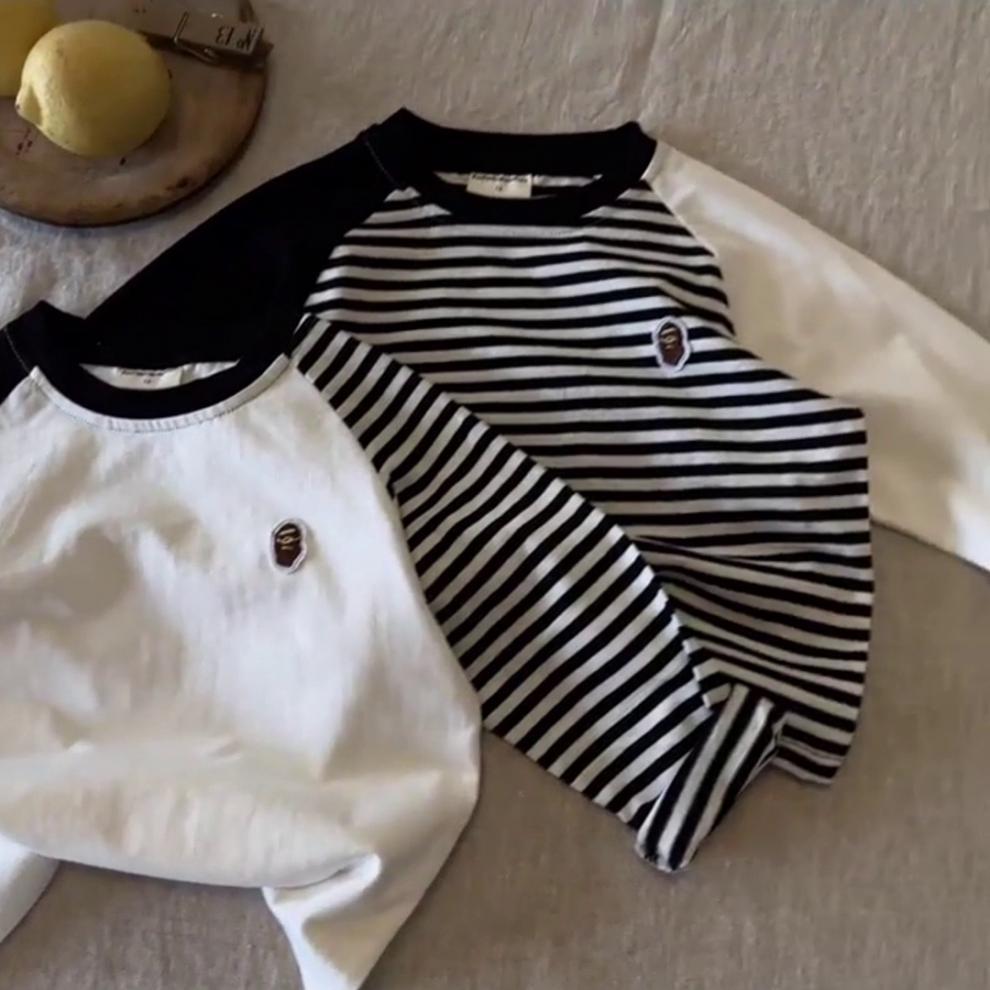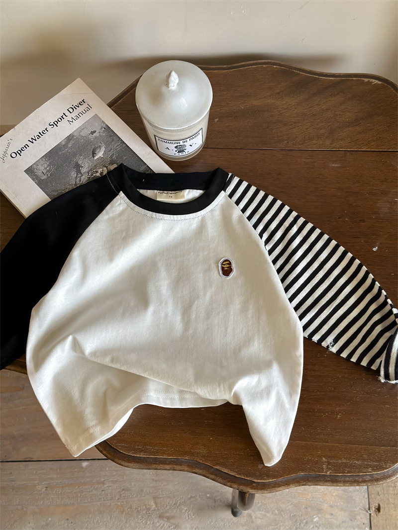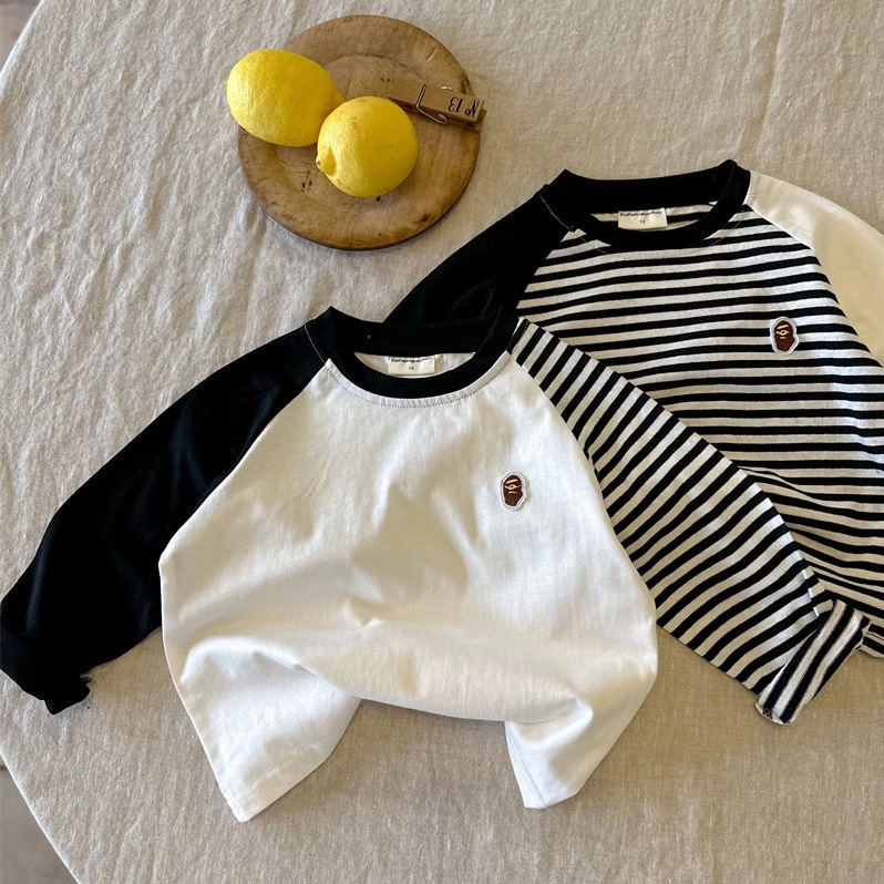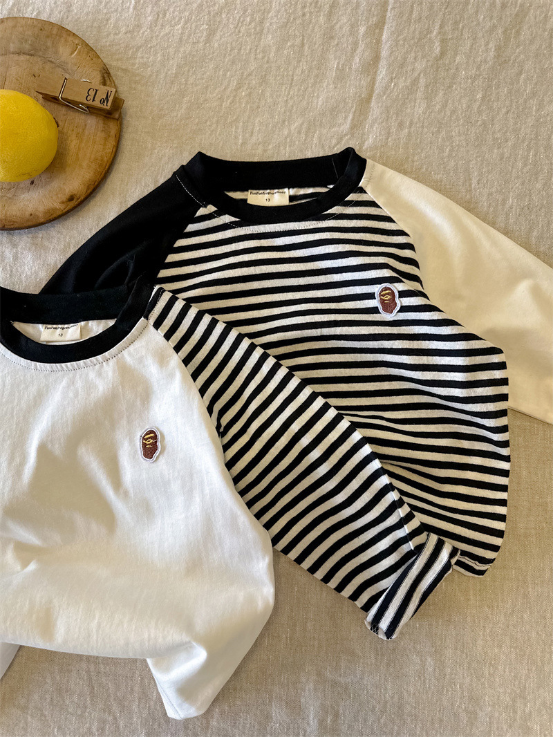 어린이 줄무늬 티셔츠 소년 봄 2024 새로운 탑 라글란 소매 유행 아기 긴 소매베이스 셔츠 여성용 면화스토어 가기