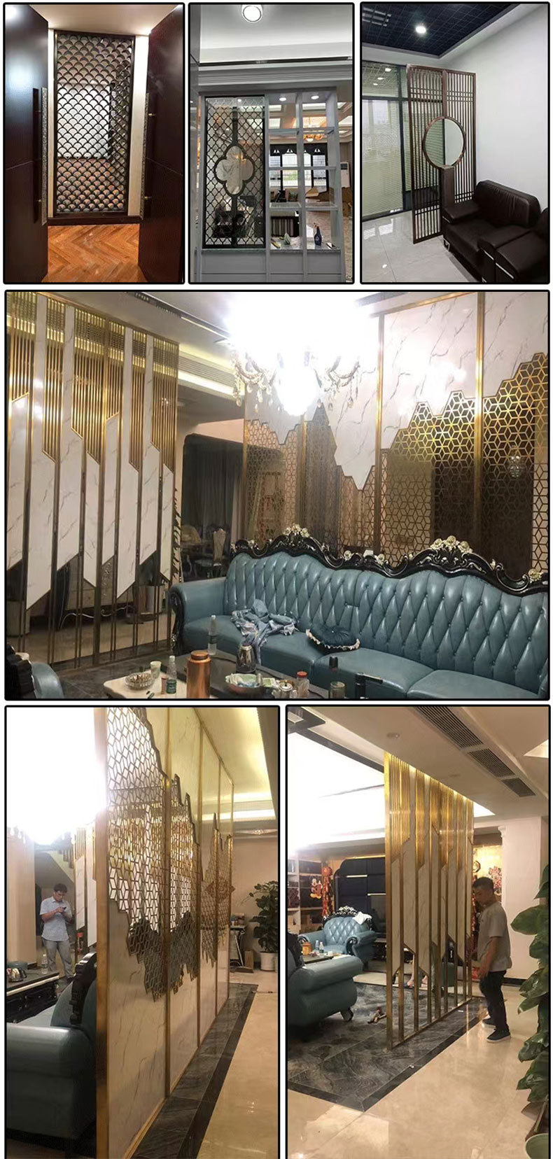 복도 파티션 장식 스테인레스 스틸 창홍 유리 스크린 빌라 거실 침실 홈 차단 새로운 중국 스타일의 좌석 화면