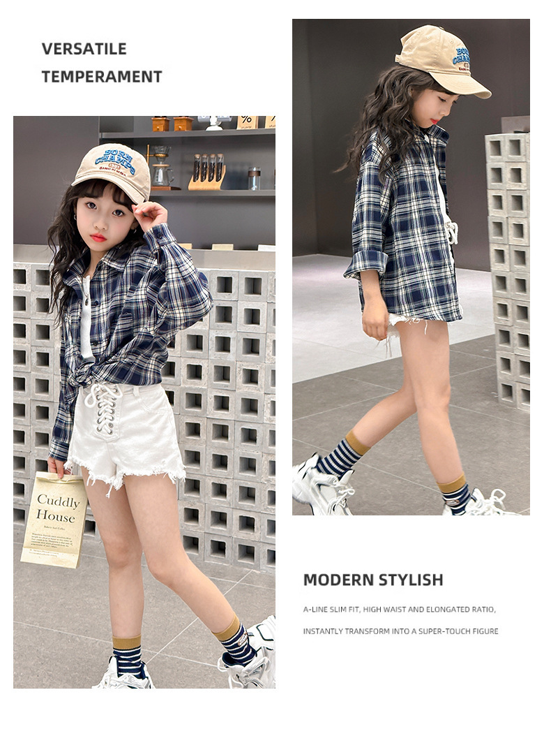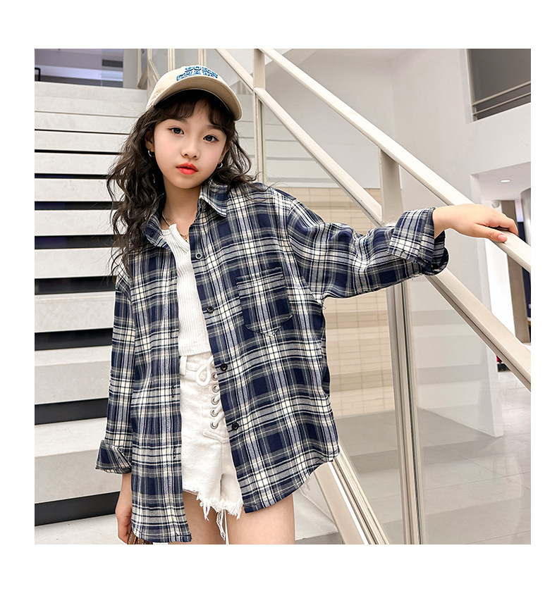 소녀 셔츠 봄 2024 봄 새로운 큰 어린이 격자 무늬 셔츠 서양식 게으른 스타일 느슨한 긴 소매 셔츠스토어 가기
