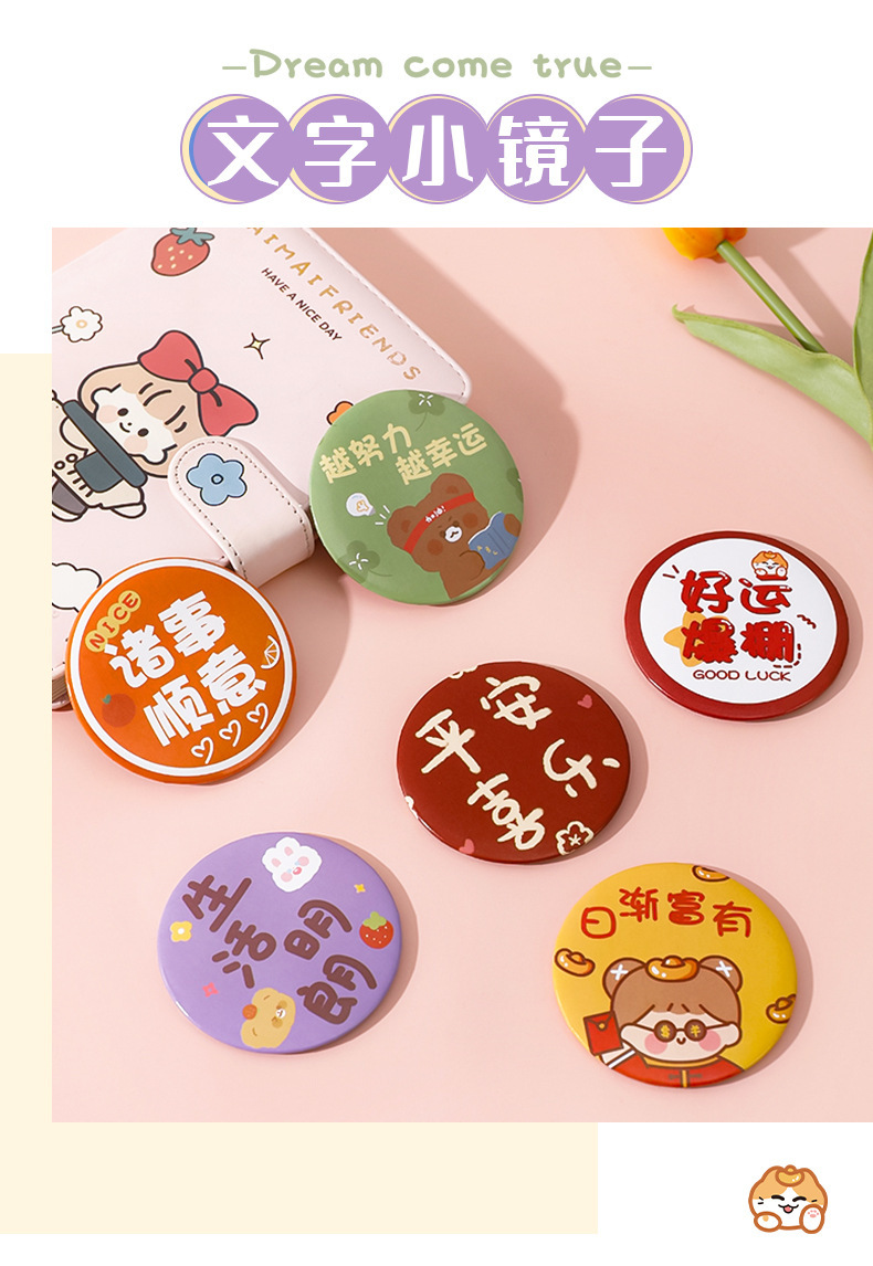 2023 만화 영감 텍스트 작은 둥근 거울 학생 미니 휴대용 메이크업 거울 귀여운 창조적 인 메이크업 거울