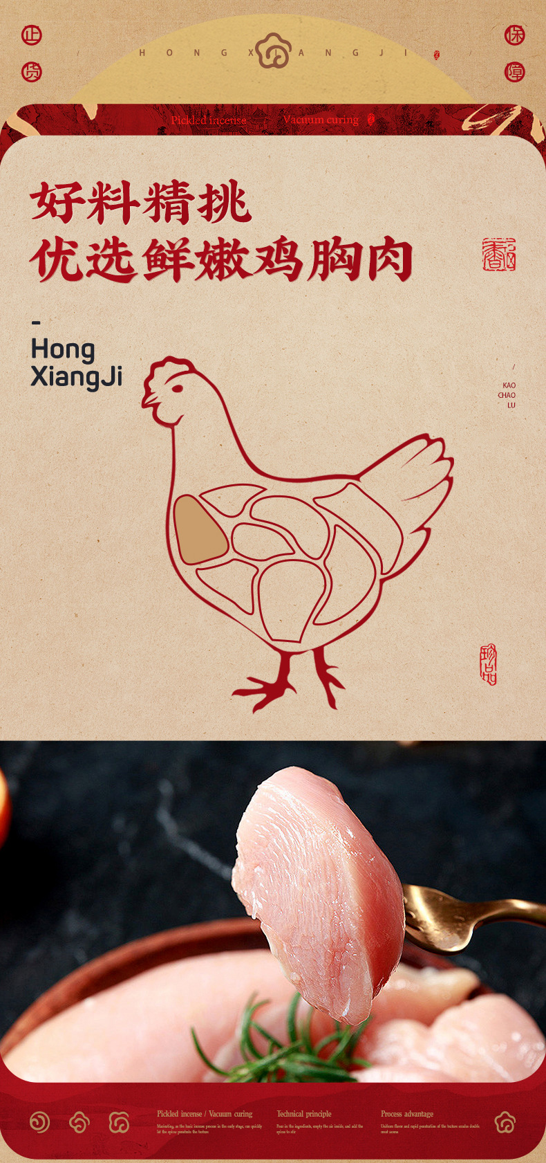 Hongxiangji 통조림 닭 가슴살 인스턴트 닭 곡물 공기 건조 닭 가슴살 말린 사무실 간식스토어 가기