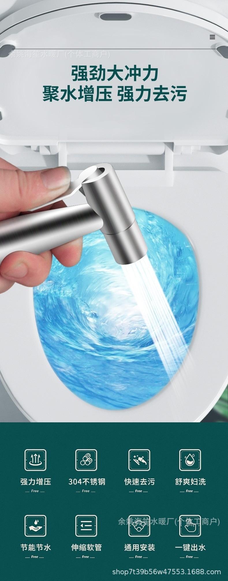 304 스테인리스 화장실 세척 스프레이 건 수도꼭지 액세서리 화장실 물 총 여성 청소기 노즐 부스터