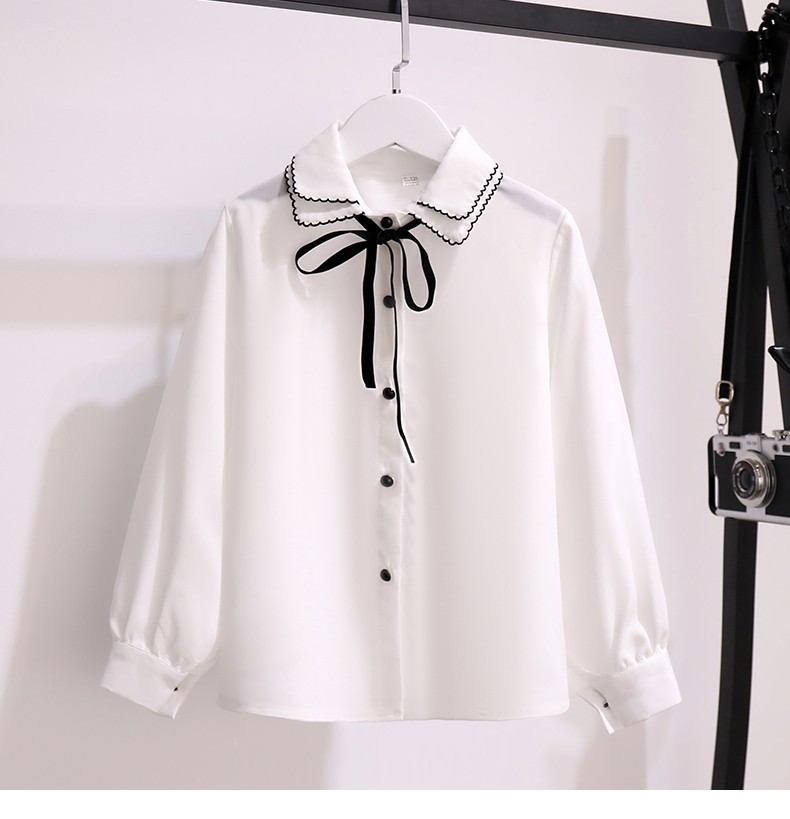 2024 봄 새 소녀 쉬폰 옷깃 긴팔 셔츠 대외 무역 어린이 귀여운 공주 단색 셔츠스토어 가기