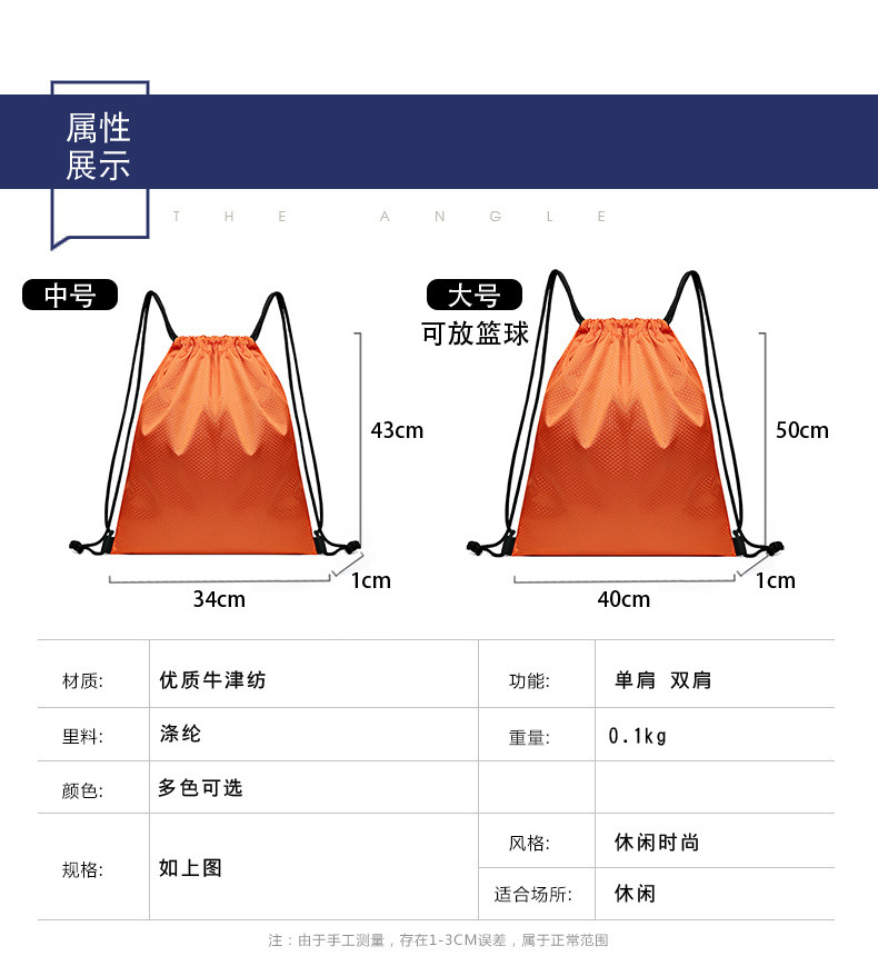600D 옥스포드 천 졸라매는 끈 포켓 간단한 스포츠 배낭 학생 훈련 배낭 마라톤 이벤트 배낭