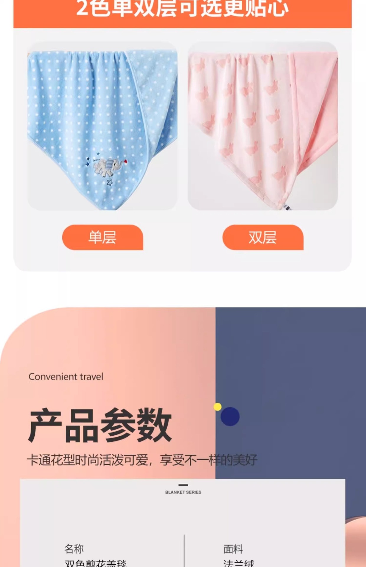 • 핑크 컷 꽃 토끼 [75x100cm] [더블 레이어]]