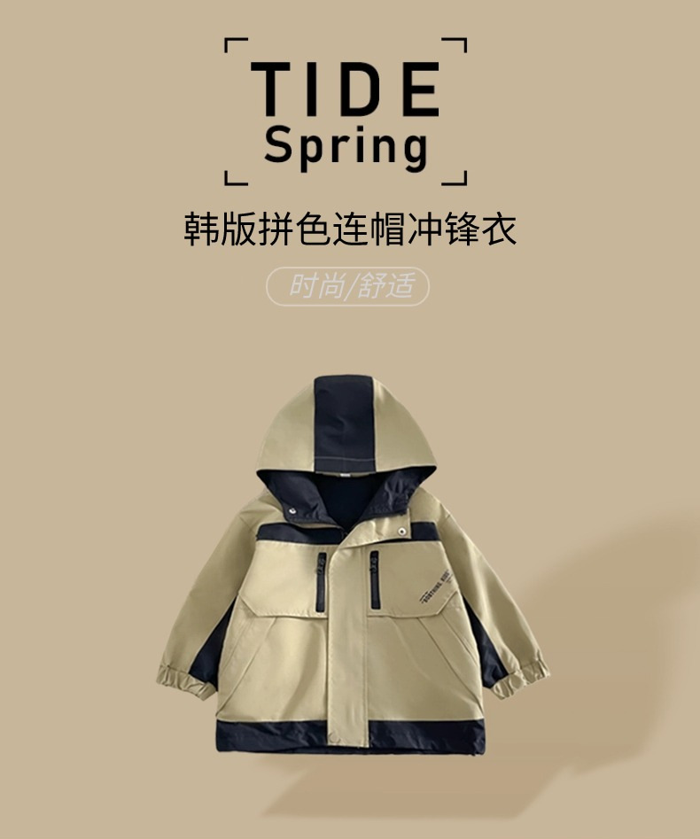 아동복 소년 봄, 가을 재킷 2025 새로운 아동 재킷 중소형 아동용 베이비 스타일 컬러 블록 윈드 브레이커 트렌드스토어 가기