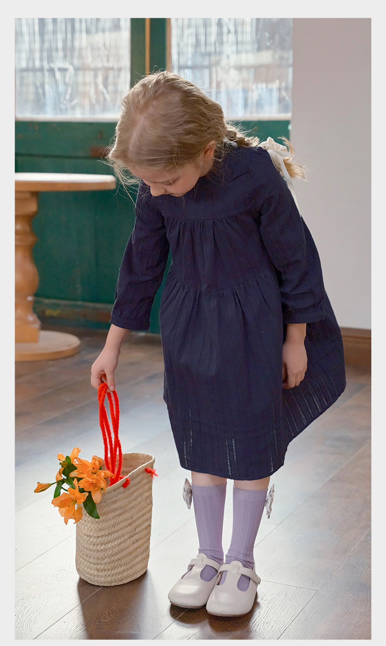 어린이 양말 봄과 가을 새 소녀의 귀여운 활 중간 종아리 양말 아기 단색 줄무늬 스타킹