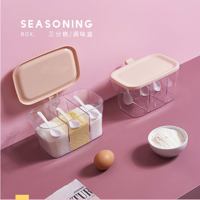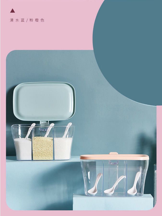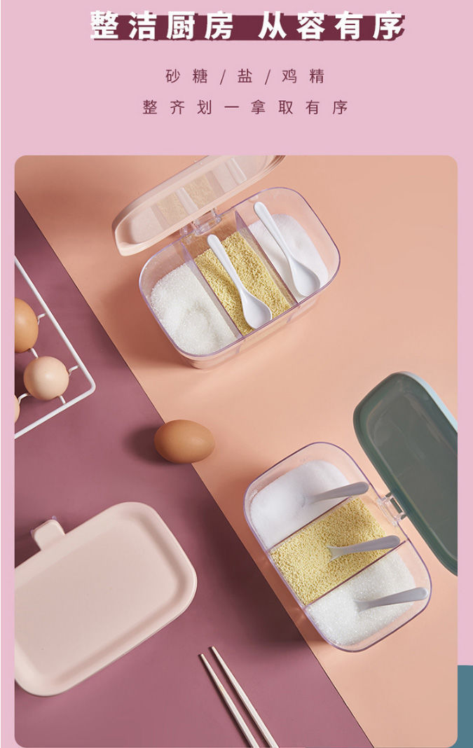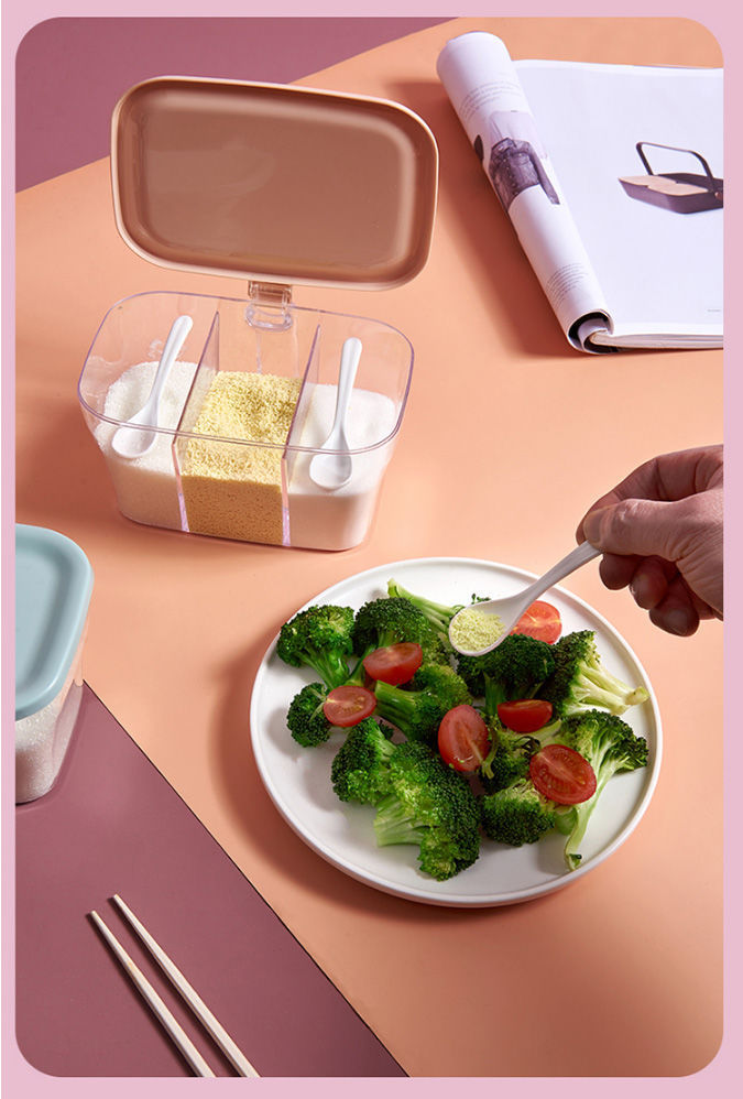 [두꺼운 멀티 그리드 조미료 상자] 숟가락 조미료 상자 주방 소금 MSG 향신료 조미료 상자와 방습 조합