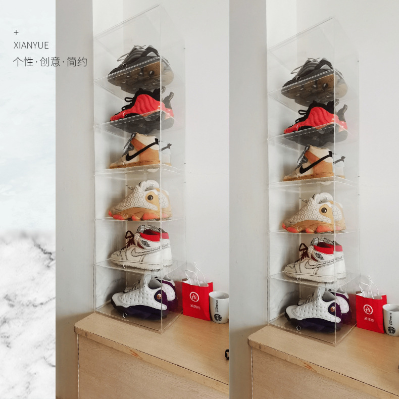 전체 투명 신발 상자 전체 투명 AJ 농구 신발 저장 상자 컬렉션 인터넷 축하 아크릴 산화 방지 및 방진 측면 오프닝