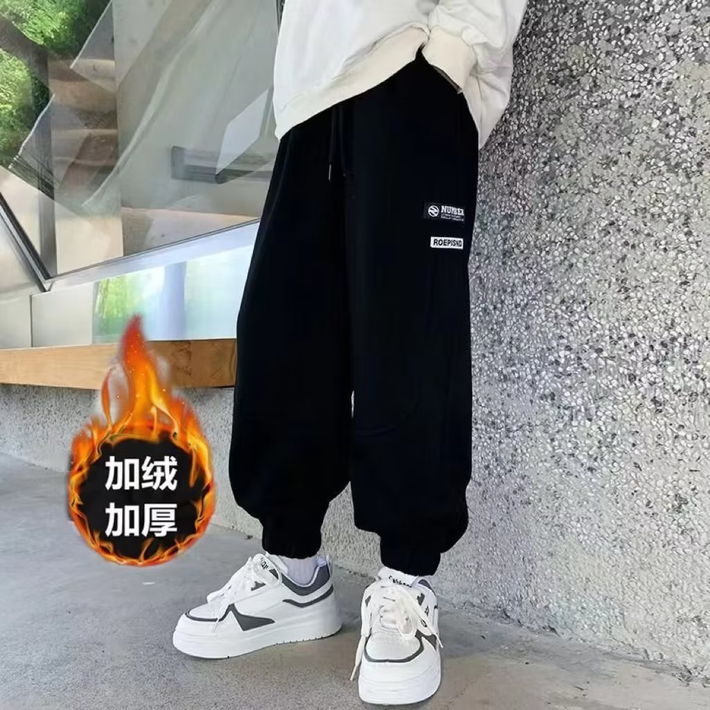 어린이 의류 소년 가을 바지 2023 새로운 중형 및 대형 어린이 스포츠 소년 기모 가을과 겨울 봄과 가을 스웨트 팬츠 패션