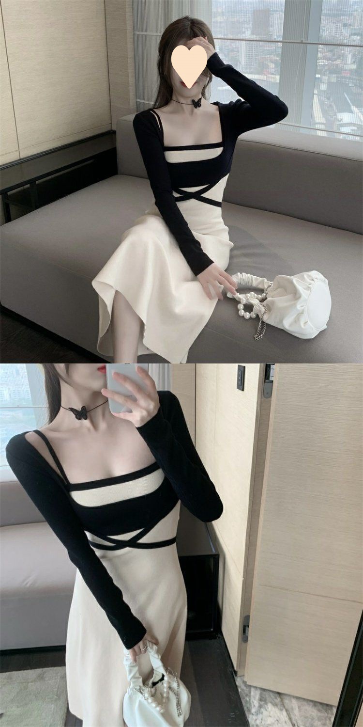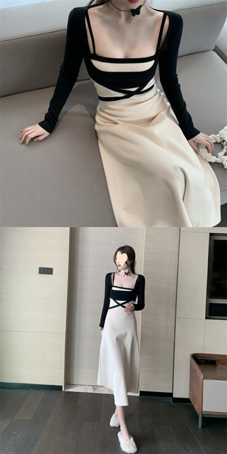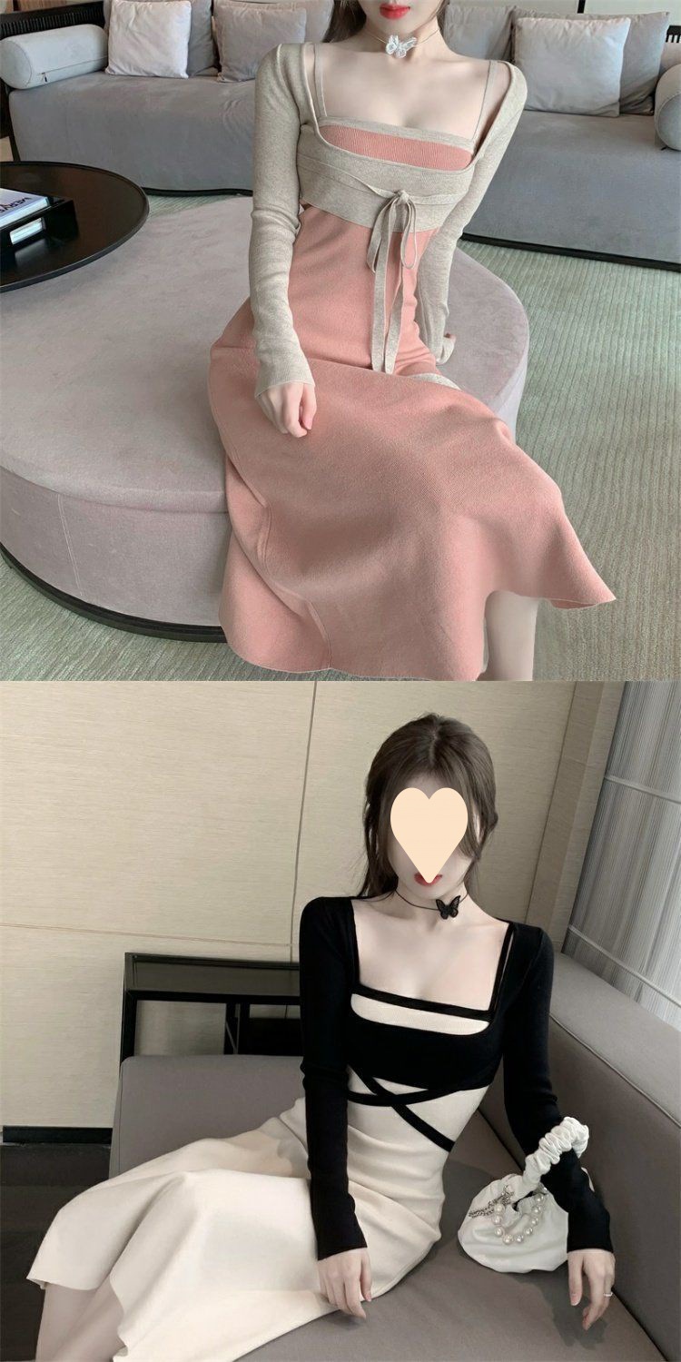 가을과 겨울 2023 새로운 여성 핑크 향기로운 스타일 세트 가벼운 럭셔리 사교계 우아한 슬링 니트 원피스스토어 가기