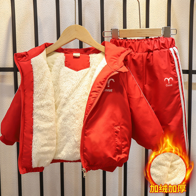아기 아동 의류 아동 벨벳 두꺼운 양복 가을, 겨울 의류 2025 새로운 아동 후드 따뜻한 면 의류 세트스토어 가기