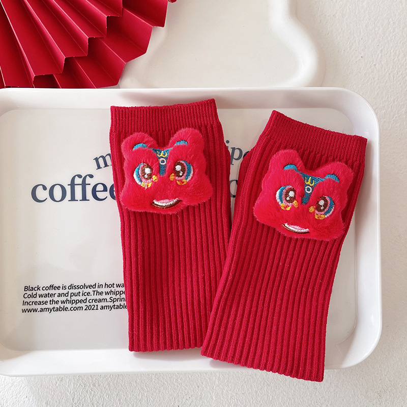 어린이 양말 출생 년 겨울 귀여운 새해 큰 빨간 송아지 길이 양말 드래곤 년 선물 상자 새해 긴면 양말