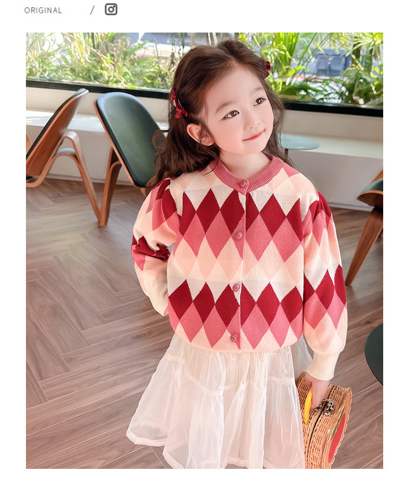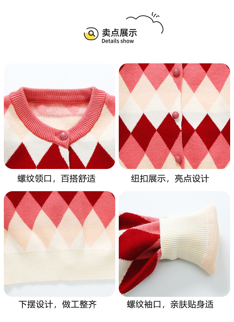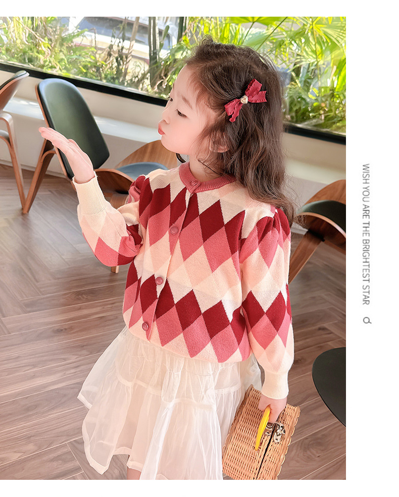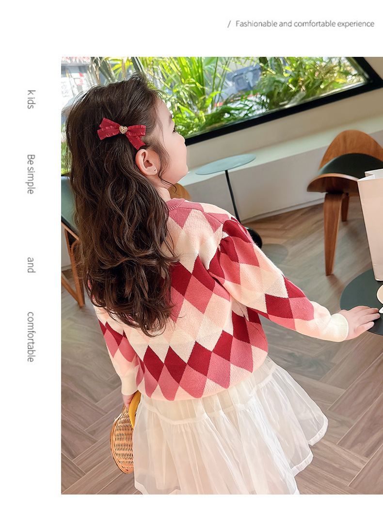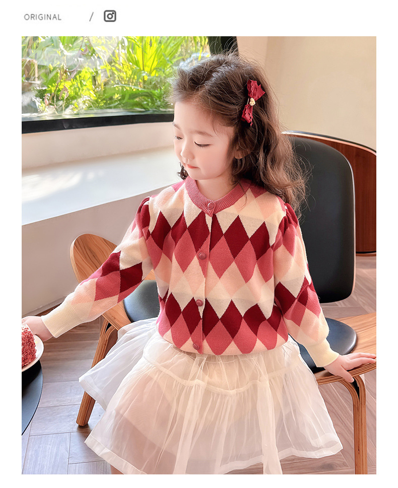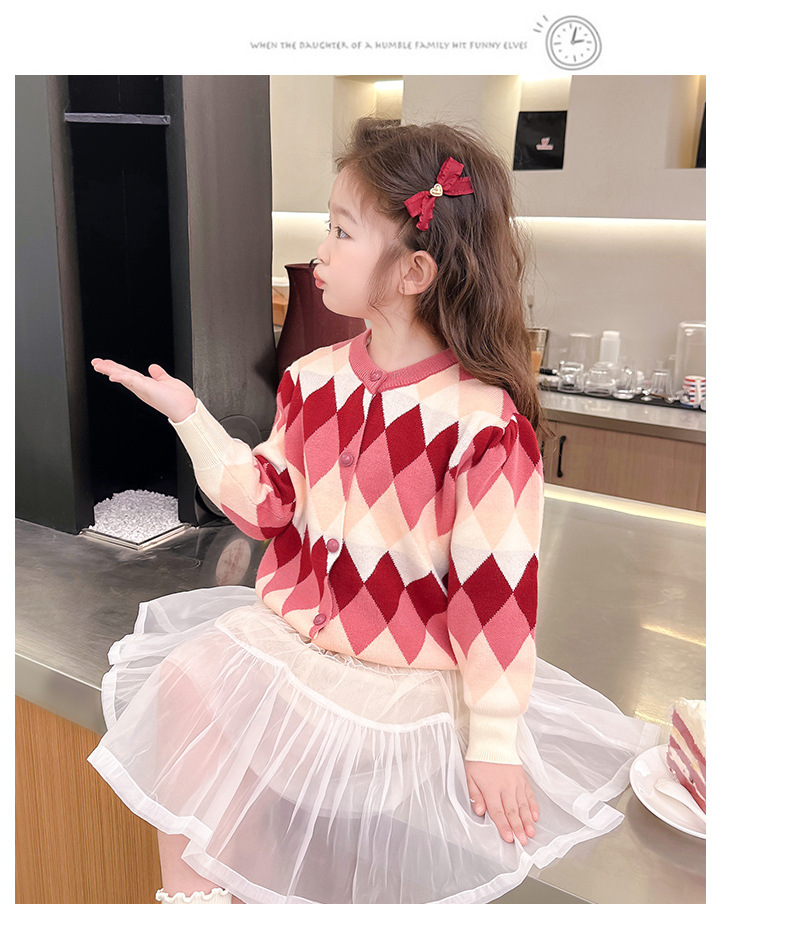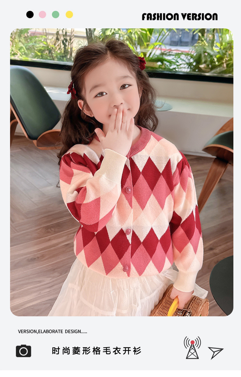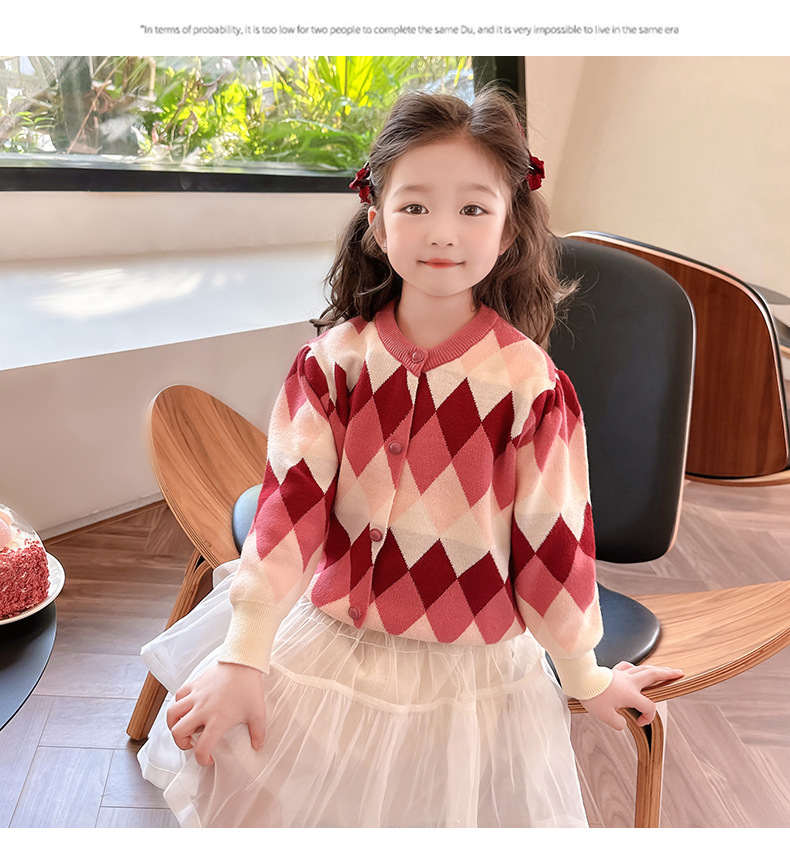 아기 소녀의 다이아몬드 격자 무늬 스웨터 카디건 2024 봄 새 아기 소녀의 세련된 올 매치 니트 코트 유행스토어 가기