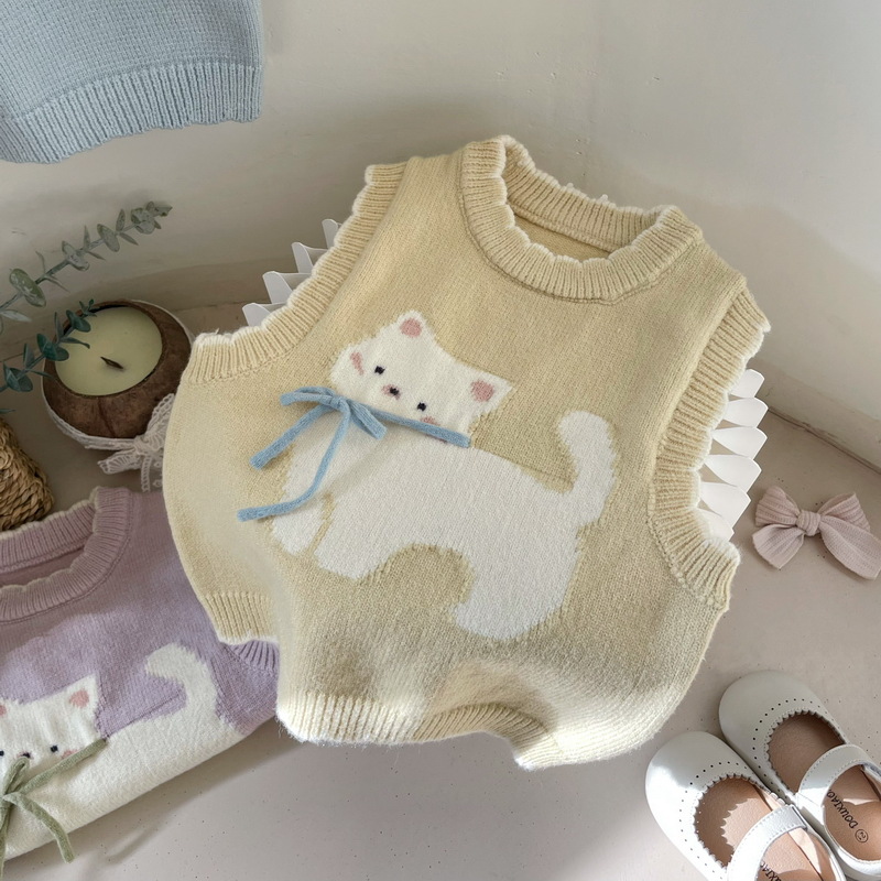 일본 직배송 타이안샤오수 스웨터 가을 겨울 여아 아동용 고양이 무늬 조끼 J707