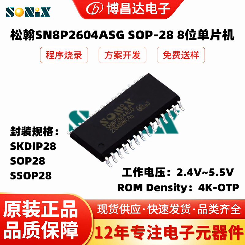 원래 정품 송산 SN8P2604ASG SOP-28 2.4V ~ 5.5V 8 비트 MCU 단일 칩 마이크로 컴퓨터스토어 가기