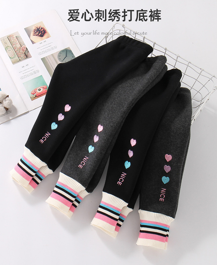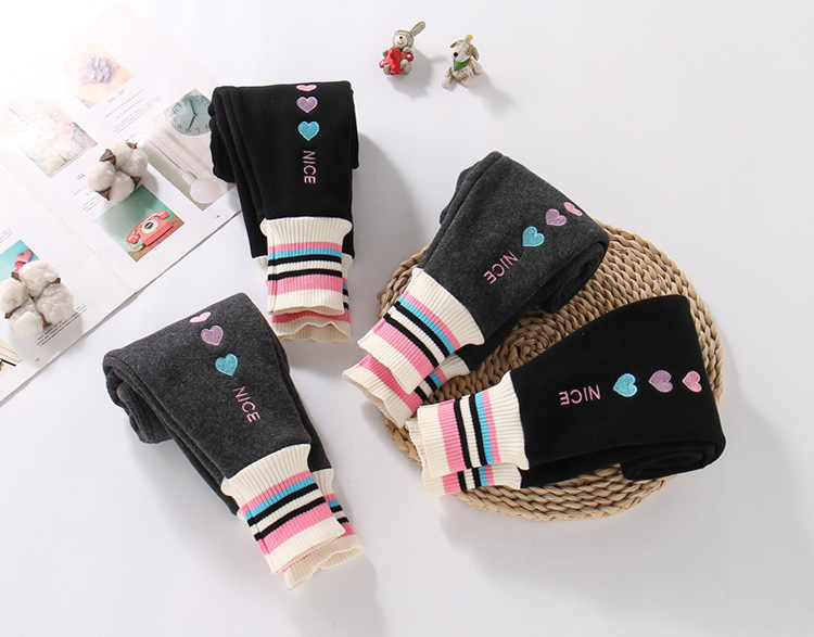 어린이 레깅스 봄과 가을 새로운 사랑 자수 아기 소녀 바지 봄 화려한 스트라이프 소녀의 레깅스 유행 겉옷스토어 가기
