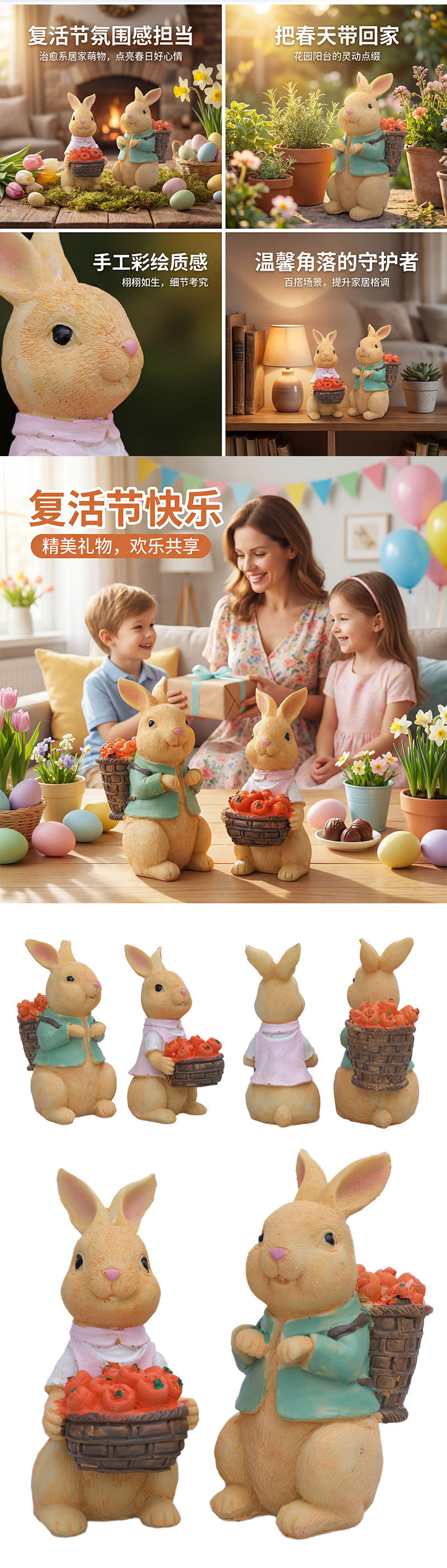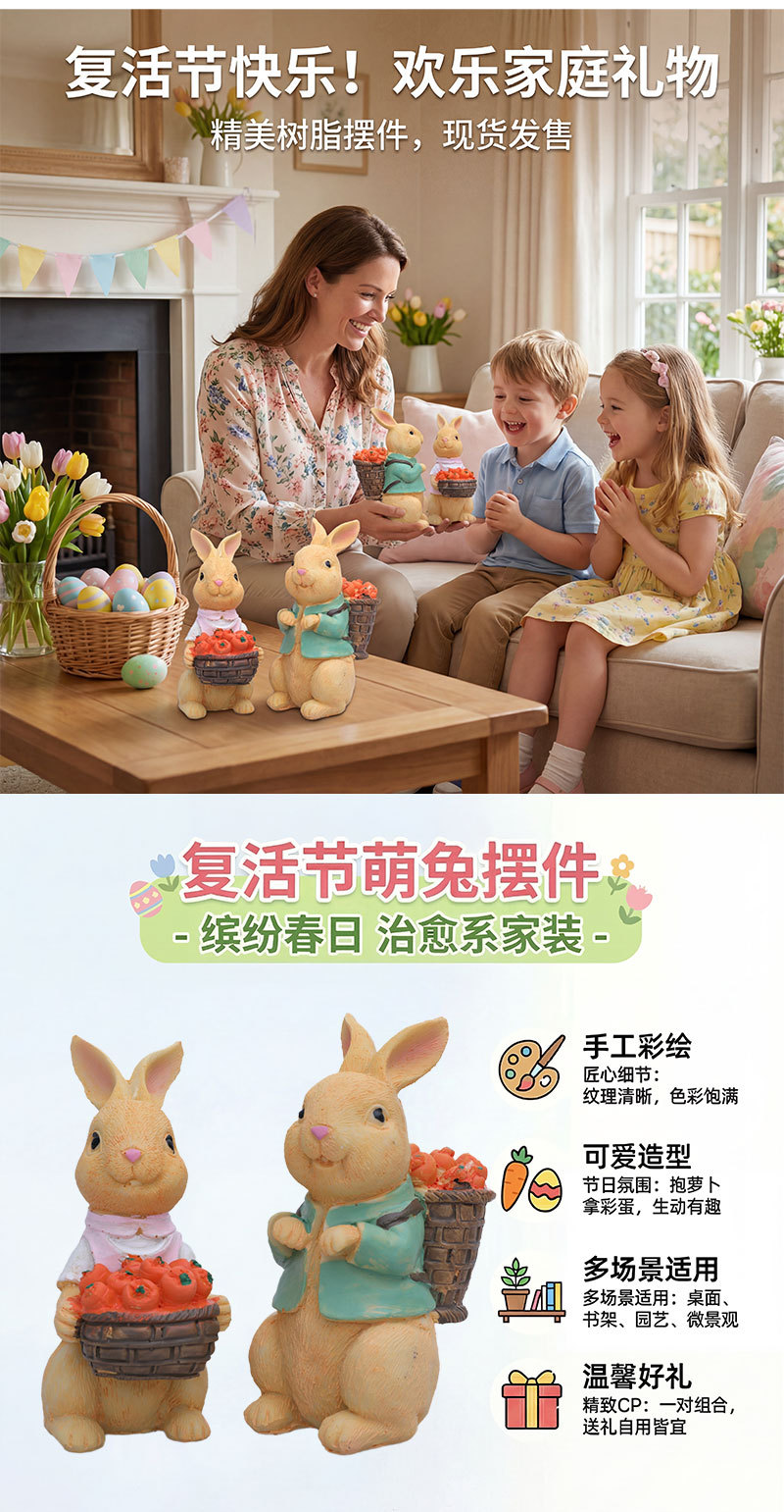 국경 스티커 라벨 부활절 토끼 장식 정원 안뜰 장식 공예 창틀 마이크로 분재 장식스토어 가기