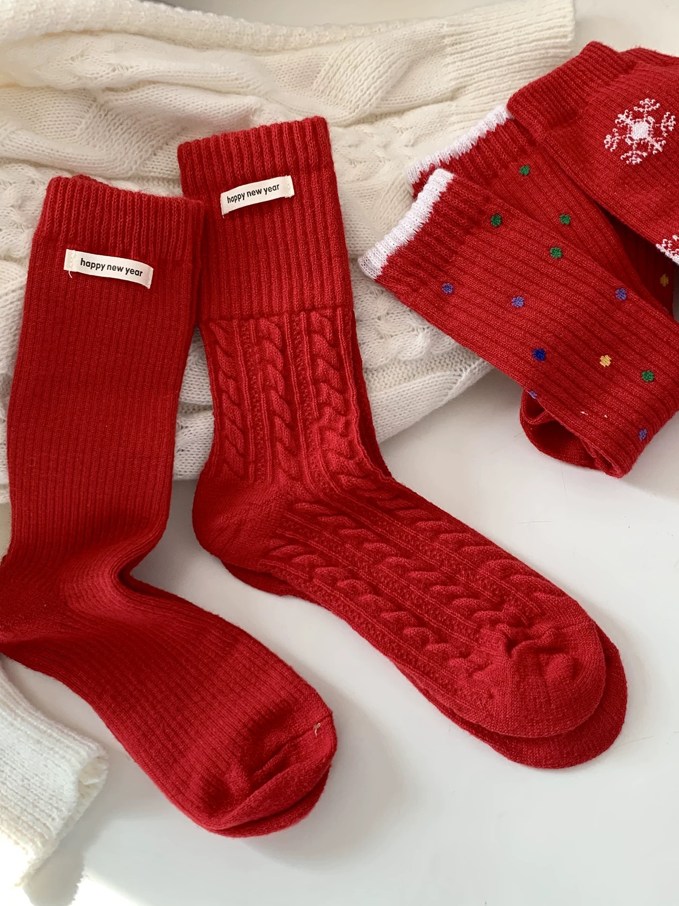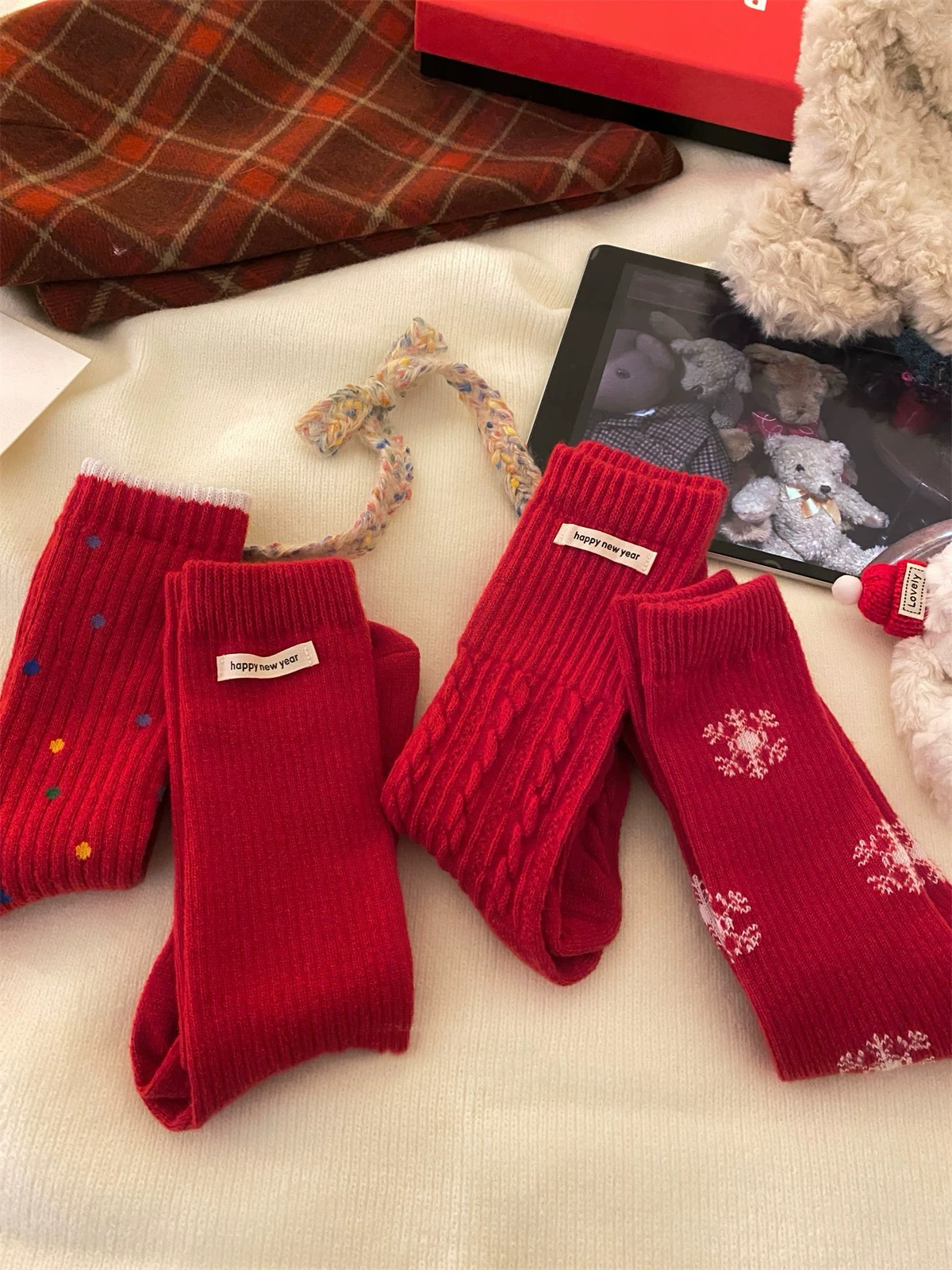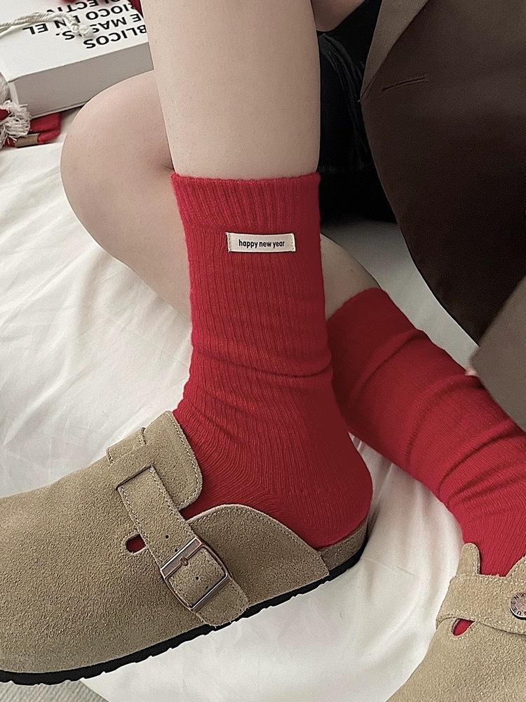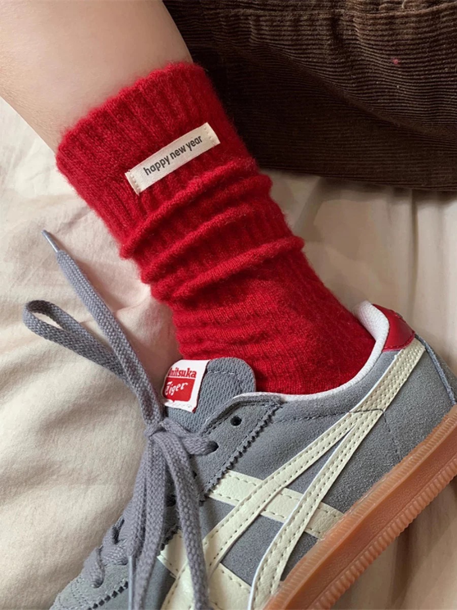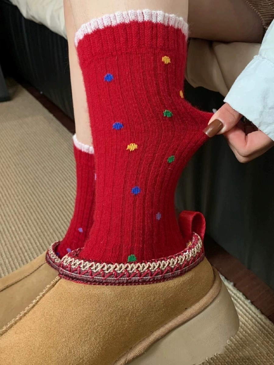 가을과 겨울 새로운 캐시미어 더미 양말 한동 게이트 컬러 몰려 폴카 도트 눈송이 새해 붉은 크리스마스 양말 여성 양말