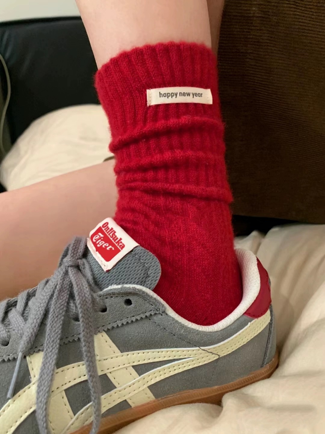 秋冬新品songmu韩国ins灰色丝绒蝴蝶结雪花百搭潮袜棉无骨中筒袜 RMB:4.60