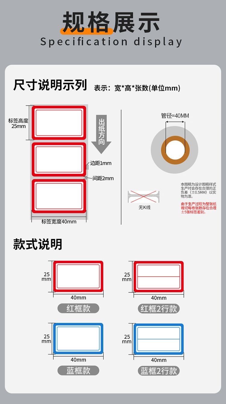 • [더블 라인] 레드/500 스티커 (25*40)