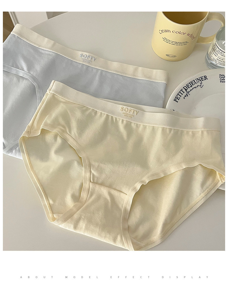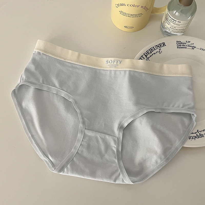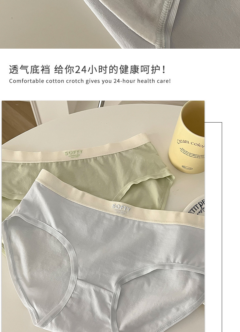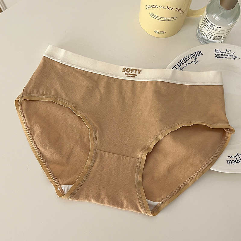 아기 코튼 누드 느낌 원활한 부드러운 찹쌀 피부 친화적 인 대비 컬러 문자 허리 소녀 중간 허리면 가랑이 여성 브리프