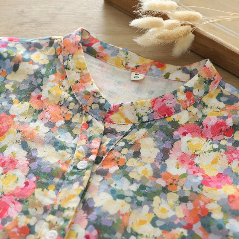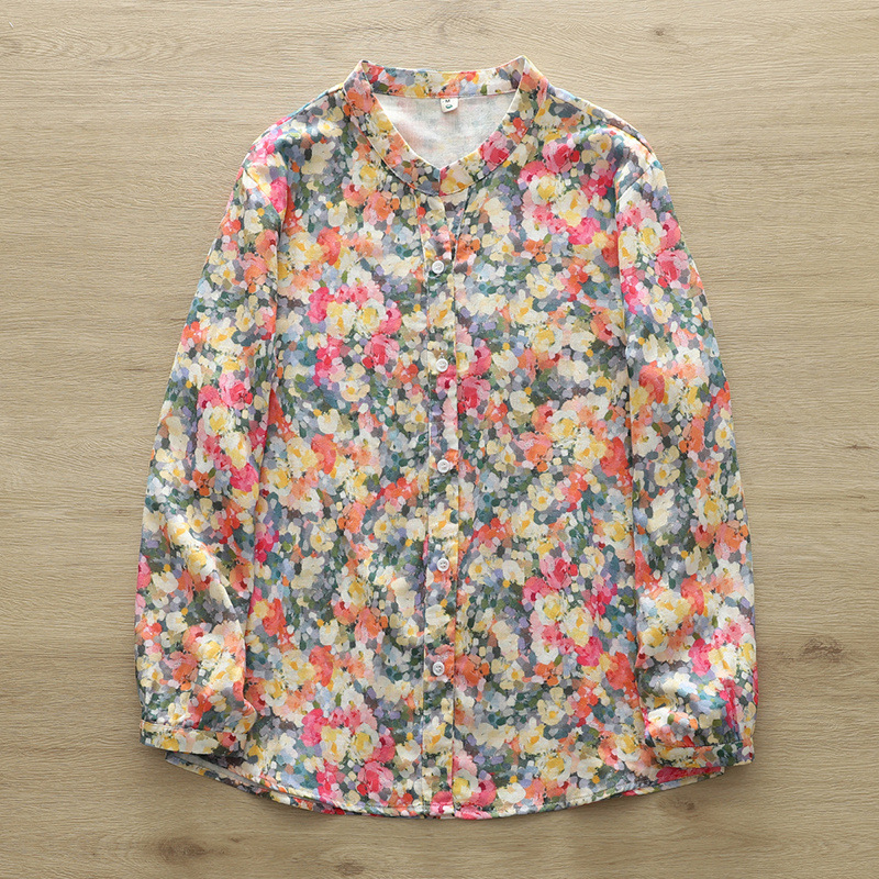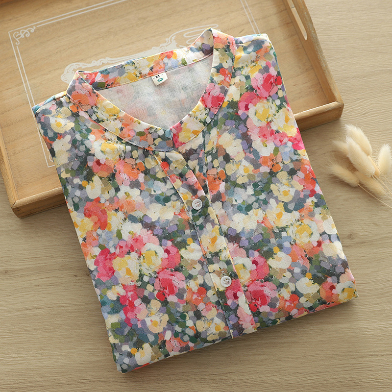 2024 봄 새로운 V 넥 낙서 인쇄 면사 여성용 카디건 셔츠 긴 소매 셔츠 도매스토어 가기