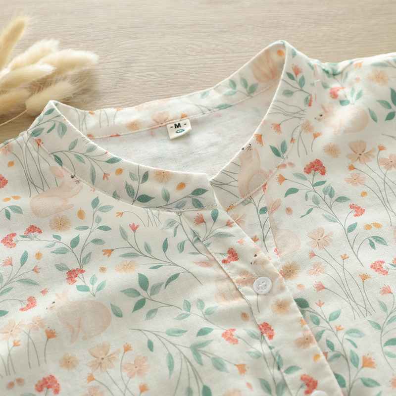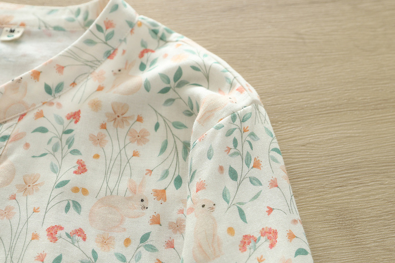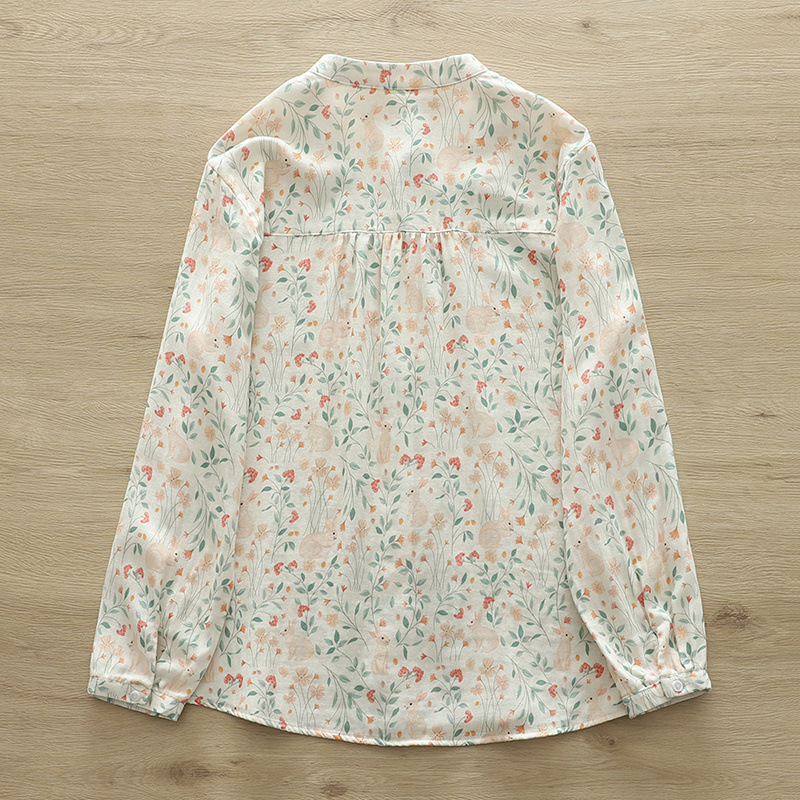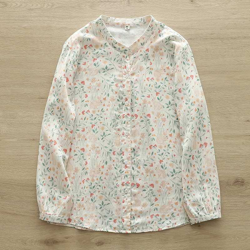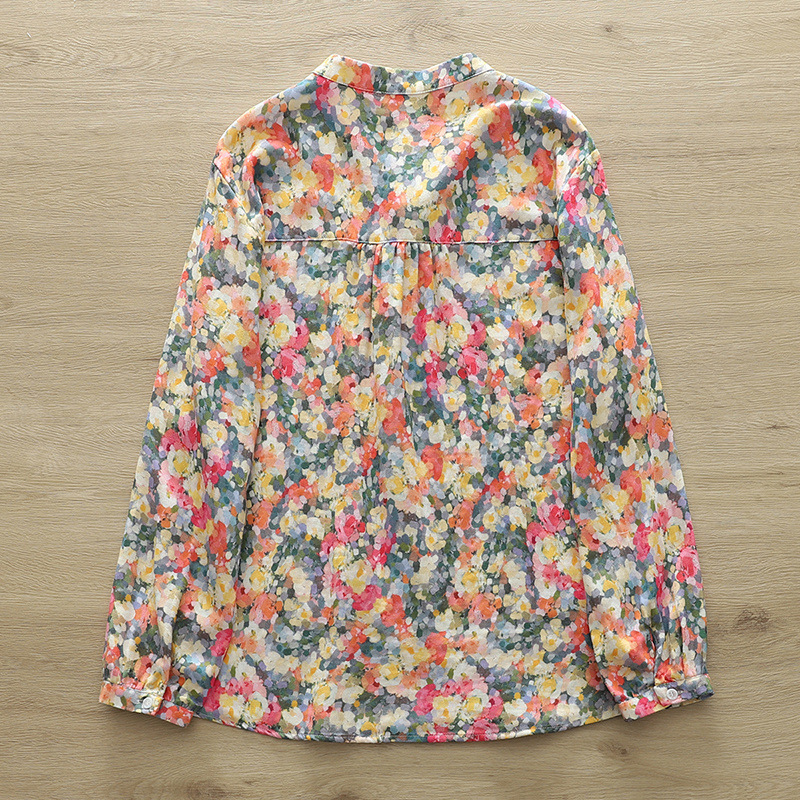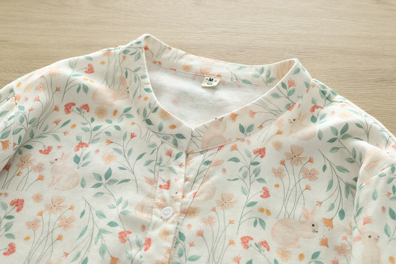 2024 봄 새로운 V 넥 낙서 인쇄 면사 여성용 카디건 셔츠 긴 소매 셔츠 도매