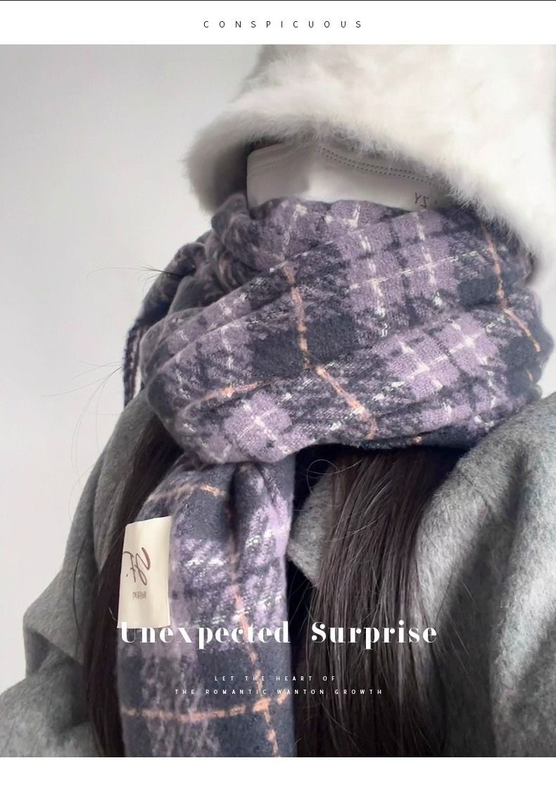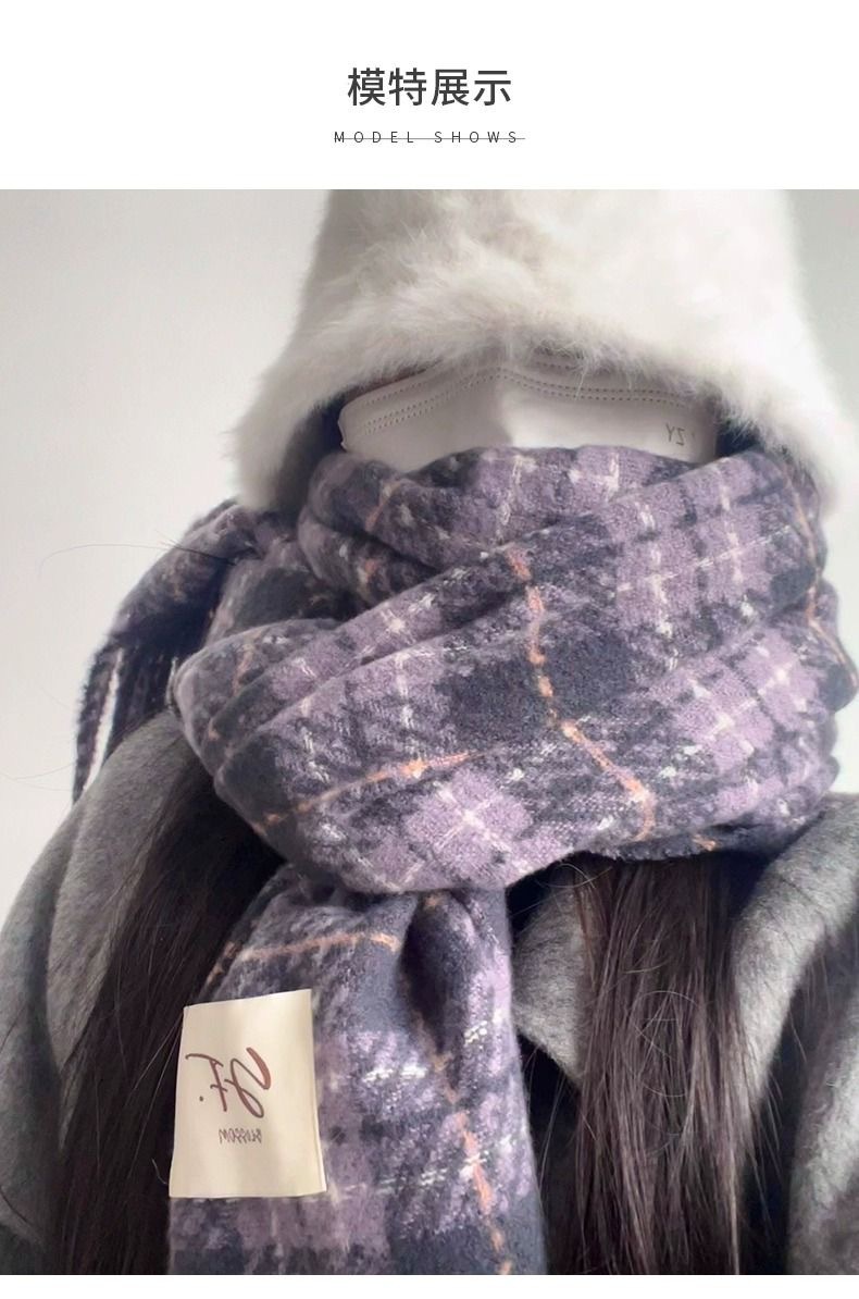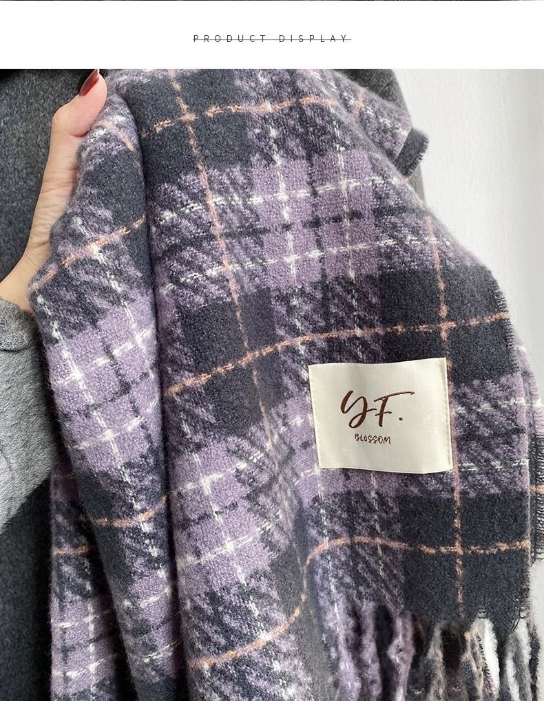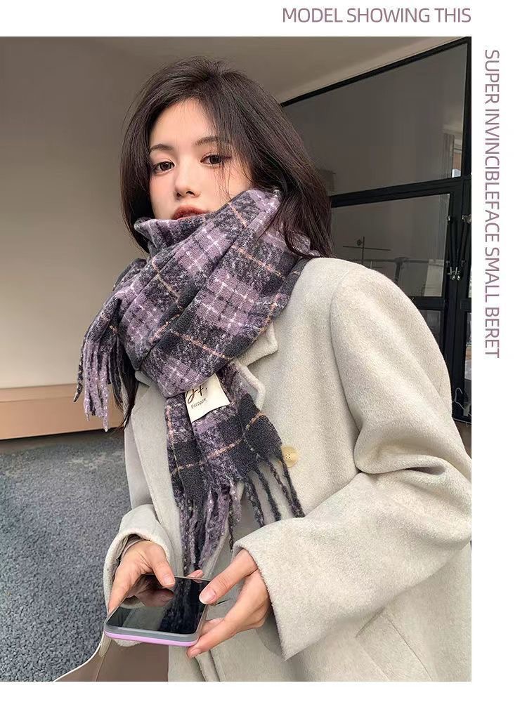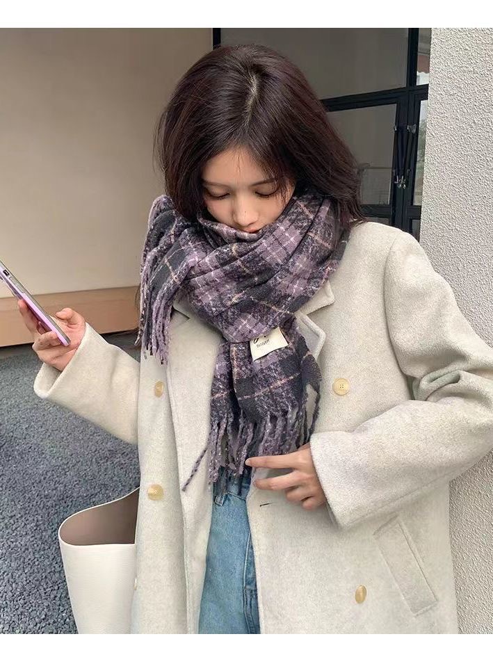 새로운 타로 보라색 스카프 여성 격자 무늬 한국 스타일 따뜻하고 흰색 부드러운 술 목도리 패션 스카프 패션스토어 가기