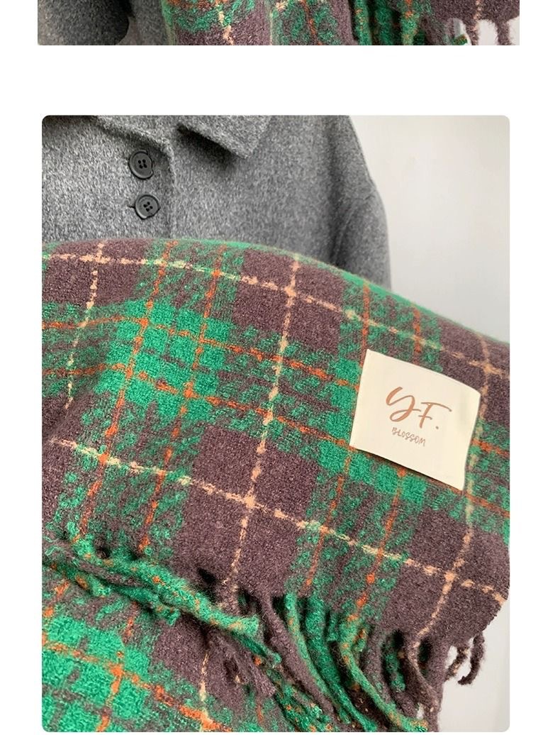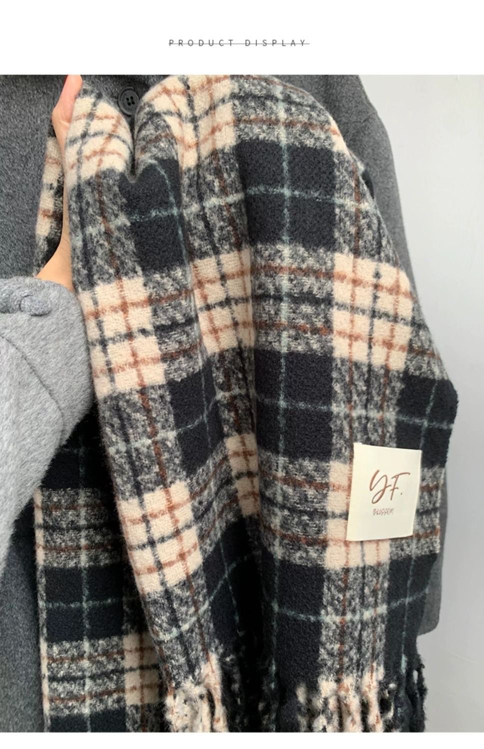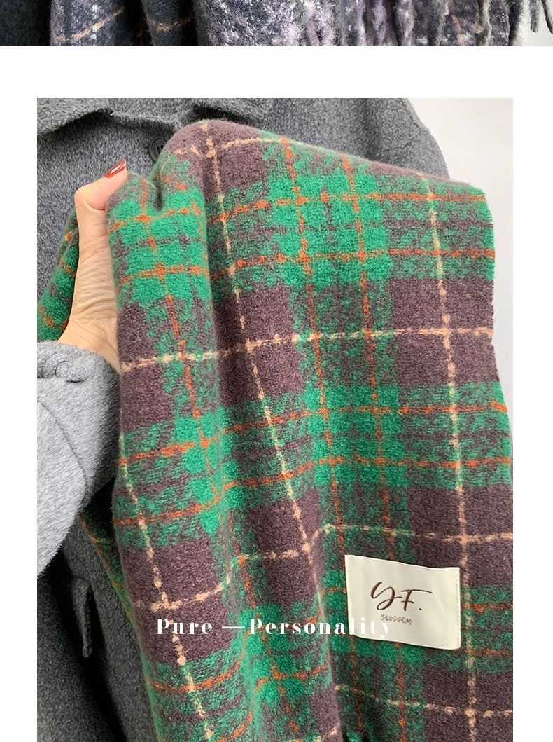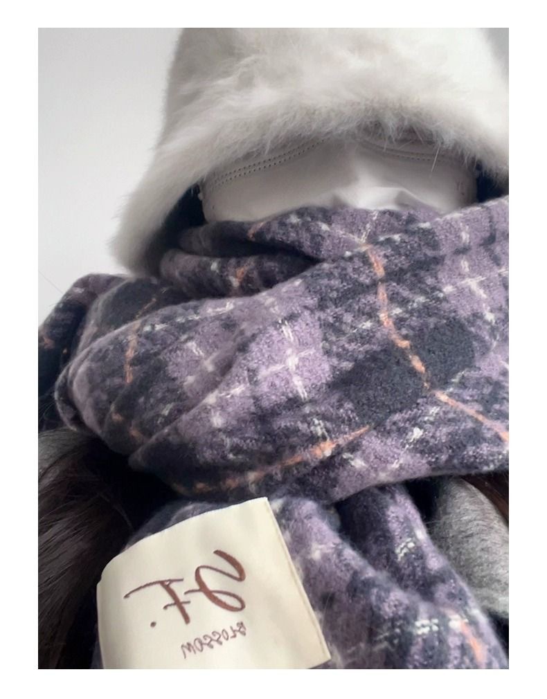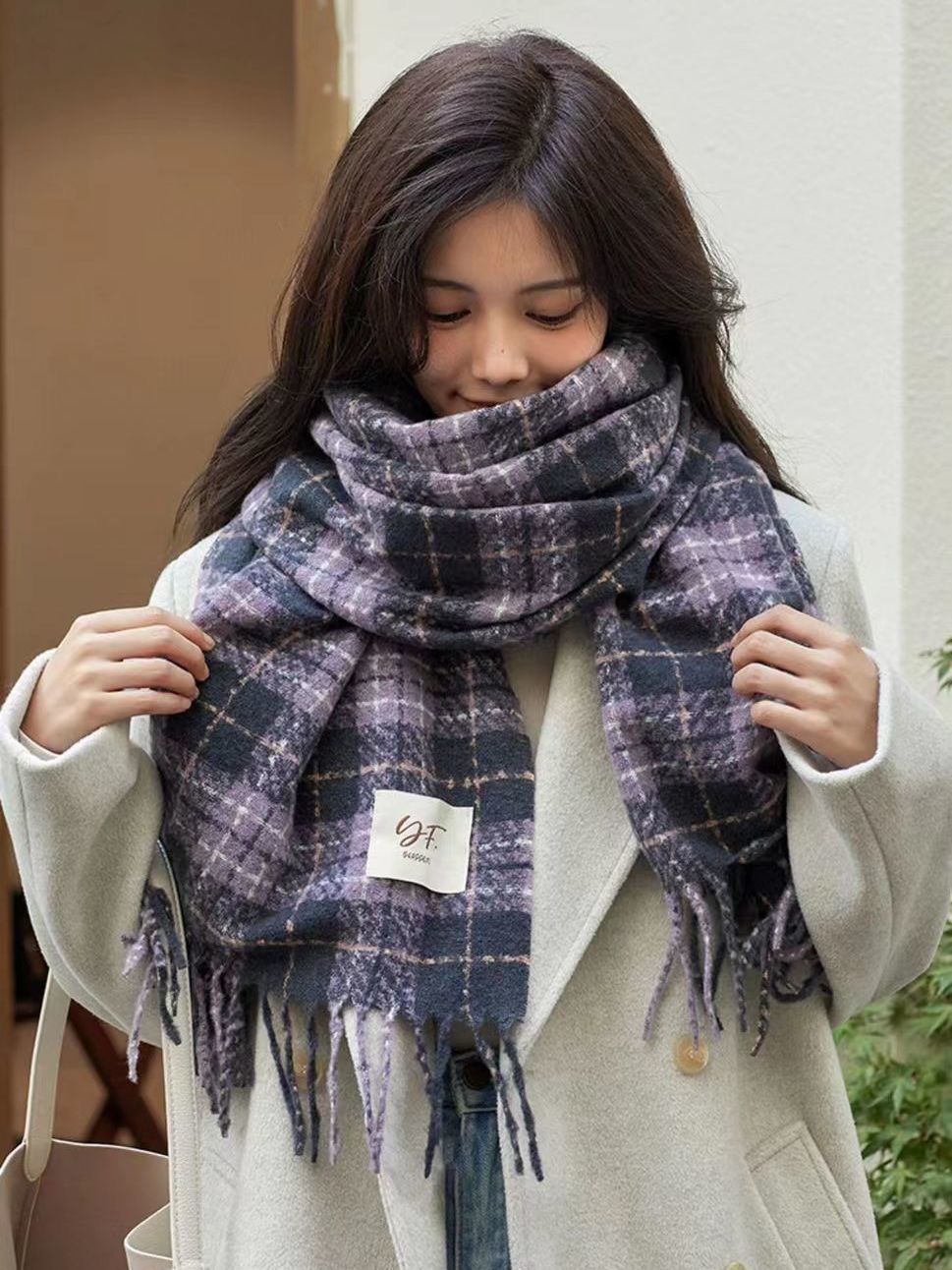 새로운 타로 보라색 스카프 여성 격자 무늬 한국 스타일 따뜻하고 흰색 부드러운 술 목도리 패션 스카프 패션스토어 가기