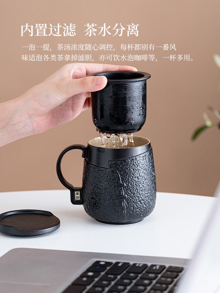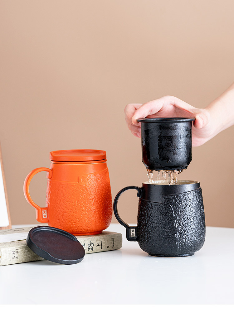 차 분리 컵 세라믹 필터 컵 프로스트 티 컵 찻잔 사무실 뚜껑 개인 로고 엘더스토어 가기