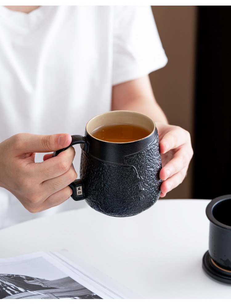 차 분리 컵 세라믹 필터 컵 프로스트 티 컵 찻잔 사무실 뚜껑 개인 로고 엘더