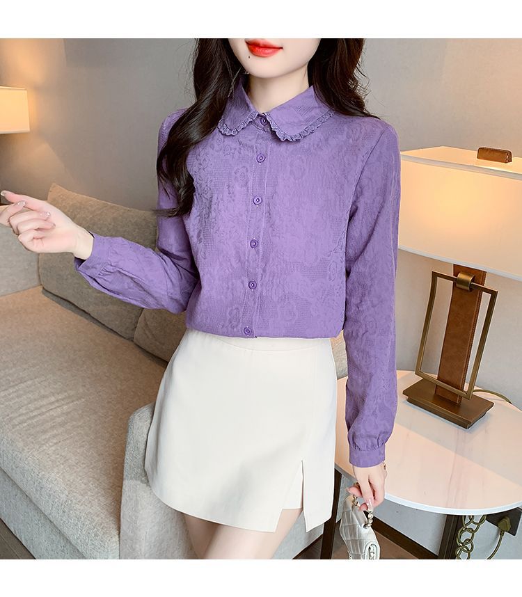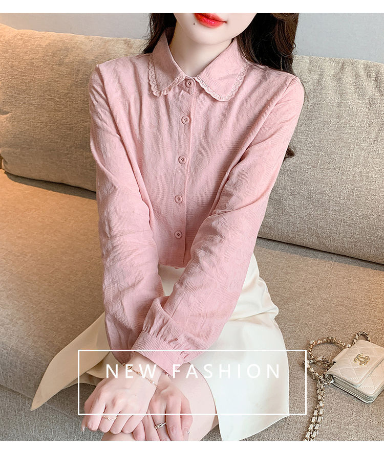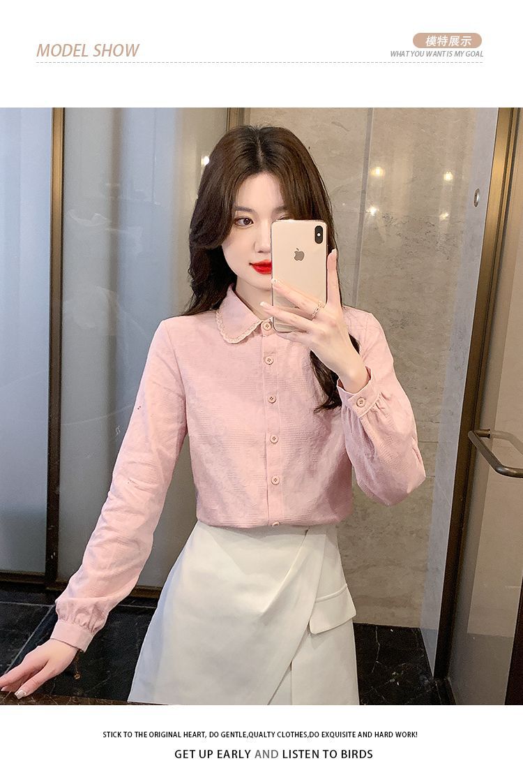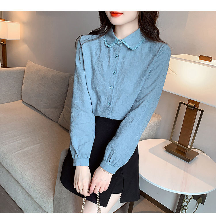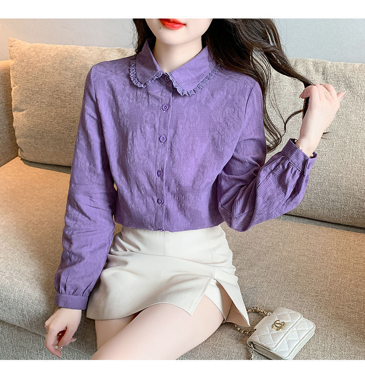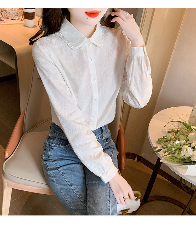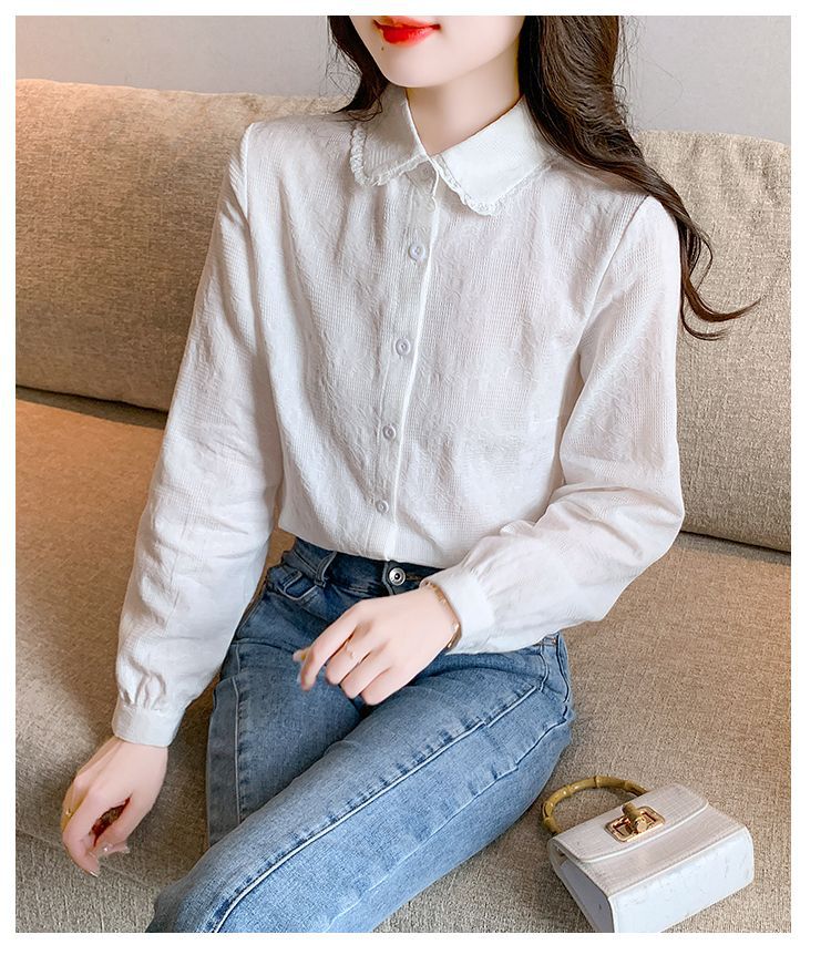 여성용 코튼 셔츠 2024 봄 새로운 다재다능한 패션 시대 감소 옷깃 긴 소매 셔츠 우아한 탑 웨스턴 스타일스토어 가기